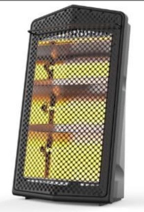 3 bulbs; 3 heater settings; Adj. Thermostat; upwards facing quartz heater