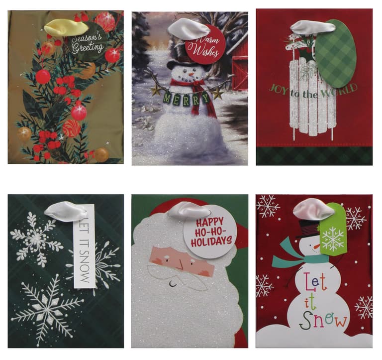 6 assorted glitter or hot stamp designs; 4.375"H x 2.5"W x 5.75"DSpecifications