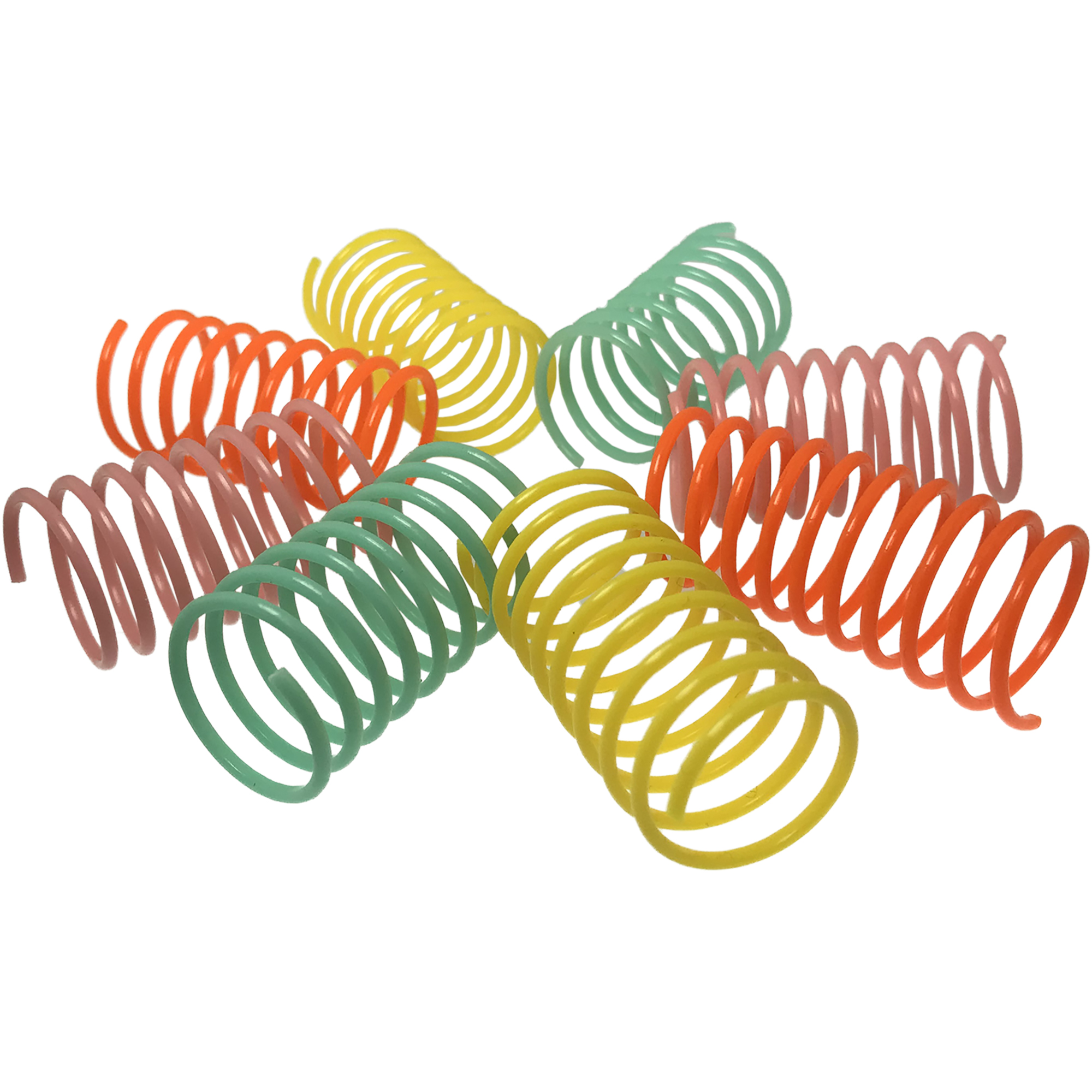 Cat are fascinated by the Cat Spring and recoil action;Cats love to roll them on the floor, pounce on them, and to gnaw at their ends; Each pack comes with 8 Cat Springs in assorted pastel colors;Specifications