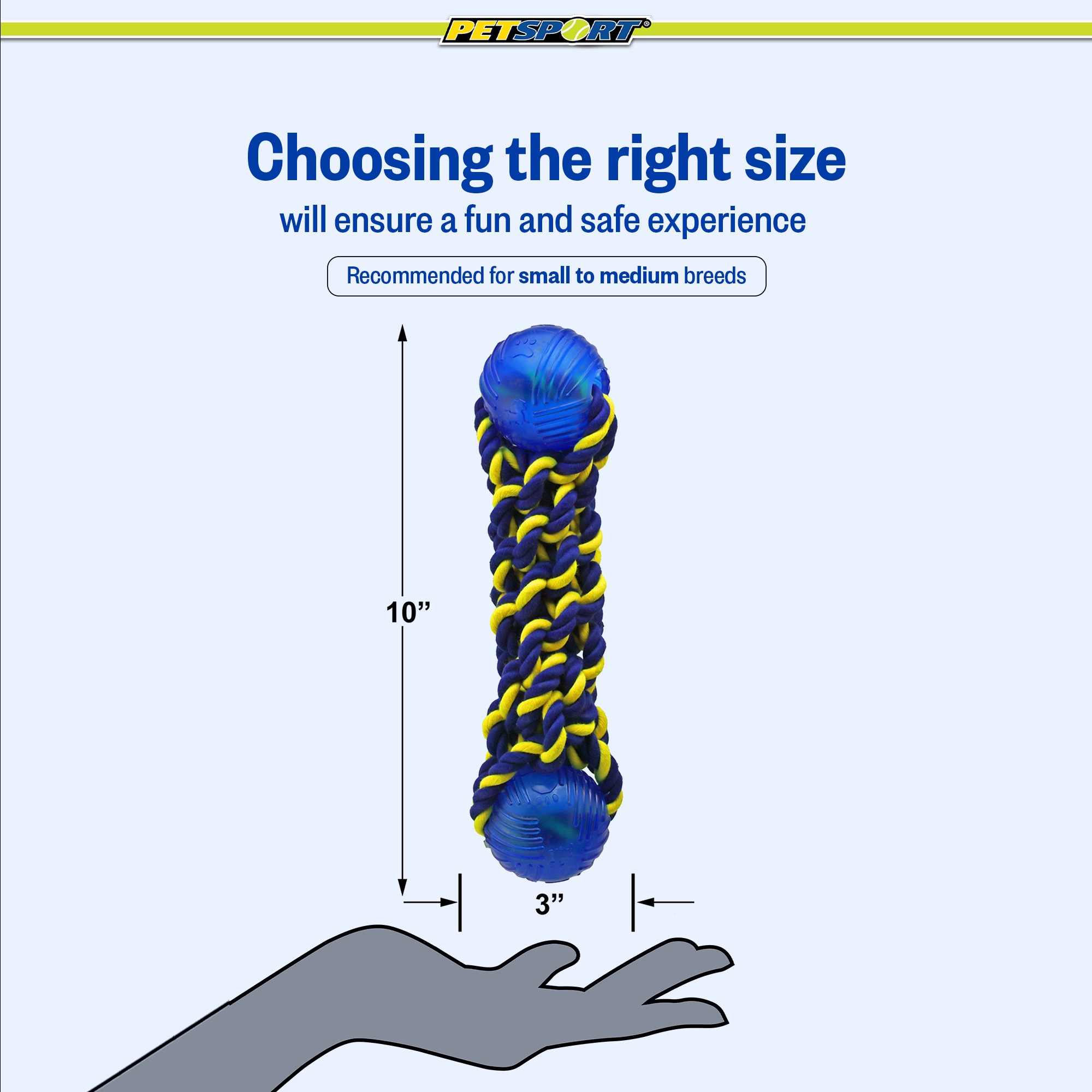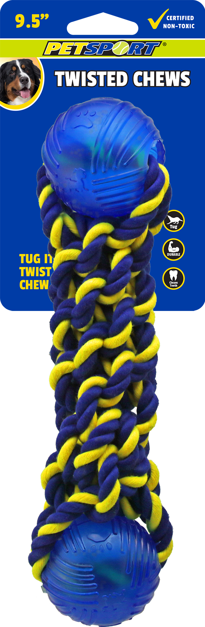 Braided Knot Bumper is a super strong tug toy; Includes two 2.5" TPR Balls; Made with premium braided cotton rope; Perfect for heavy chewers, teething puppies and dogs who love tug-of-war; The natural fibers also help keep teeth & gums healthy; This 9.5" rope tug is extremely durable