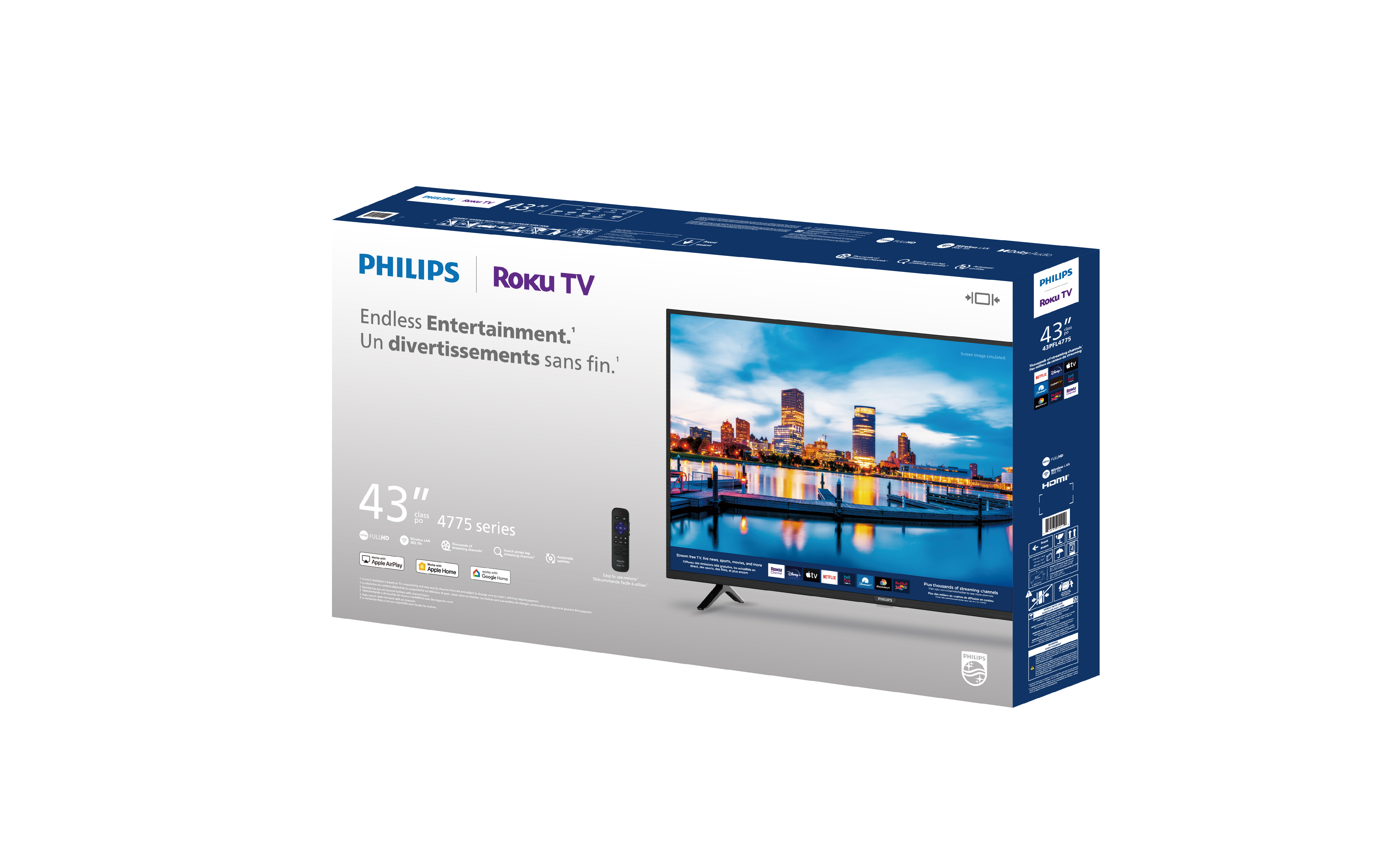 With a simple home screen, easy to use remote and automatic software updates, this Philips RokuTV is smart TV that's simple to use and easy to love. Free streaming of over 500,000 movies and TV episodes, with fast and easy search features. Watch, listen, and share with AirPlay, a perfect fit for any smart home. Dolby audio and 1080P FHD resolution, for the perfect movie experience. Works with Google assistant.Specifications