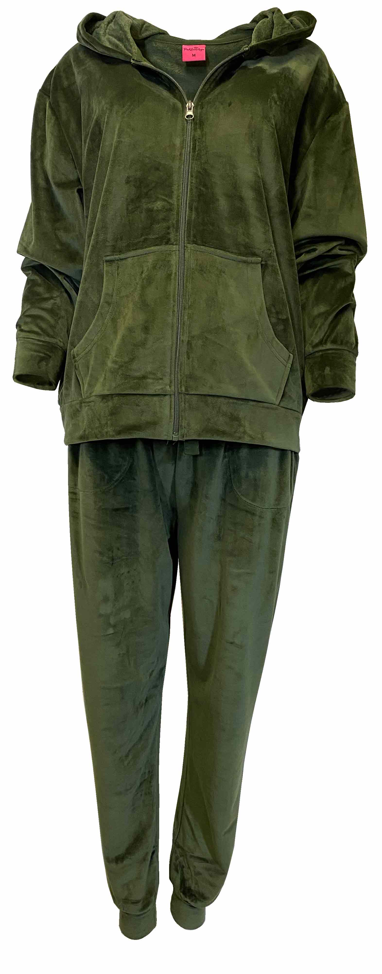 FRONT ZIP JACKET WITH HOODIE; PULL ON JOGGER WITH POCKETS; SOFT FABRIC