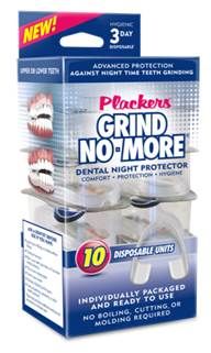 Each disposable Plackers Grind No More Dental Guard is made without BPA or natural rubber latex and is hygienic with use up to 3 days; Featuring patented clench and grind absorbing bite plates to stop you from grinding your teeth during the night and to increase peaceful sleep; Includes 10 pack of disposable dental guards with up to 30 uses; Plackers Grind No More Dental Guard provides the ultimate comfort for your teeth during sleep with a one size fits all design for upper or lower teeth; Plackers Grind No More Dental Guards are individually packaged and ready to wear as soon as you receive them with no boiling, cutting, or molding required!