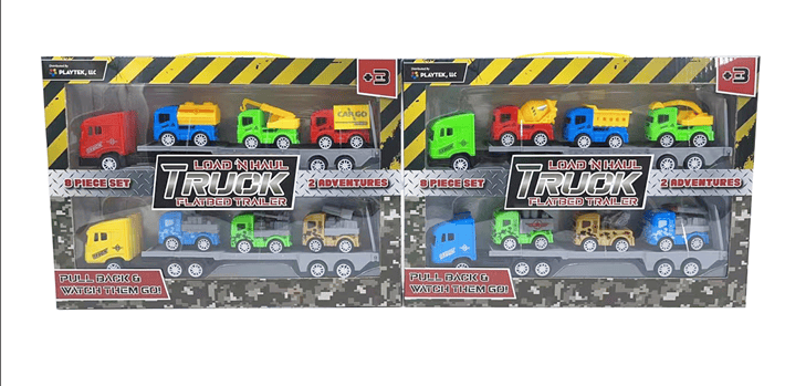 4 pack friction flatbed carrier truck with friction contruction vehicles for pretend play load n haul trailersSpecifications