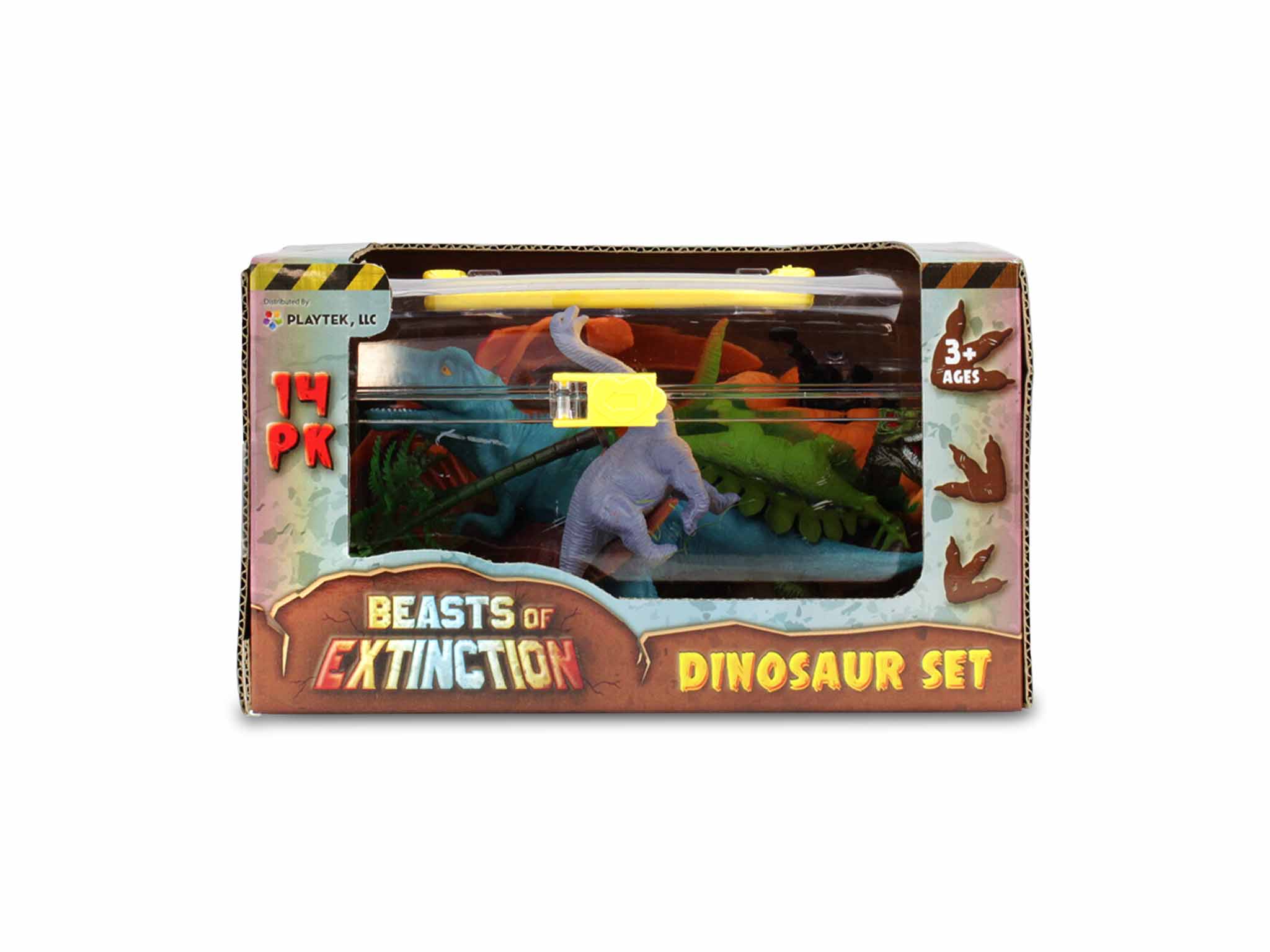 14 Piece Dinosaur Figurine playset in box, easy to clean up and fun pretend play for children. "PLAYROOM FUN- Grab our Playtek Figurine sets while you can to guarantee a unique life-like experience! Made with high quality Plastic these action packed figurines are here to lastVARIETY OF SIZES- This figurine set comes with a variety of Dinosaurs from smaller sizes to larger sizes! VERSATILE- These figurines are not only used for playroom fun, use these figurines as an excelent decoration for any Birthday, Birthday cake, Or even room decorations PERFECT CHOICE- Why us? Our unique stand out colors and characters catch the eye of any adult or child, man or women, girl or boy, alike!"Specifications