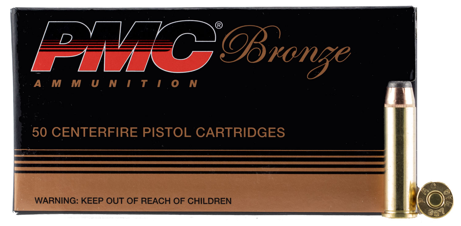 PMC's Bronze Handgun is manufactured with the same quality and dependability built into the Starfire ammunition. All PMC cartridges must pass through the rigorous inspection of the electronic powder check station. If the propellant in any cartridge varies by as little as two-tenths of one grain, the system stops, and that cartridge is discarded.Specifications