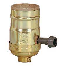 1/8" cap with set screw.; 250 volt; 250 watt; Caps threaded 1/8"-27 I.P.S. fit standard lamp stems.; Carded; Medium base 2 circuit turn knob; Operates a two filament lamp on a sequence of Low-Medium-High-Off; Polished Brass; Set screw prevents rotation of socket.; UL listed