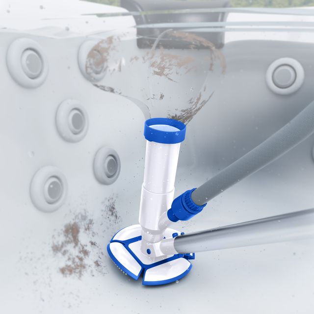 360° Flexible sides will automatically adjust to angles in the pool or spa; Attaches to a standard garden hose; Attaches to a standard telescopic pole; Locking debris bag with zipper