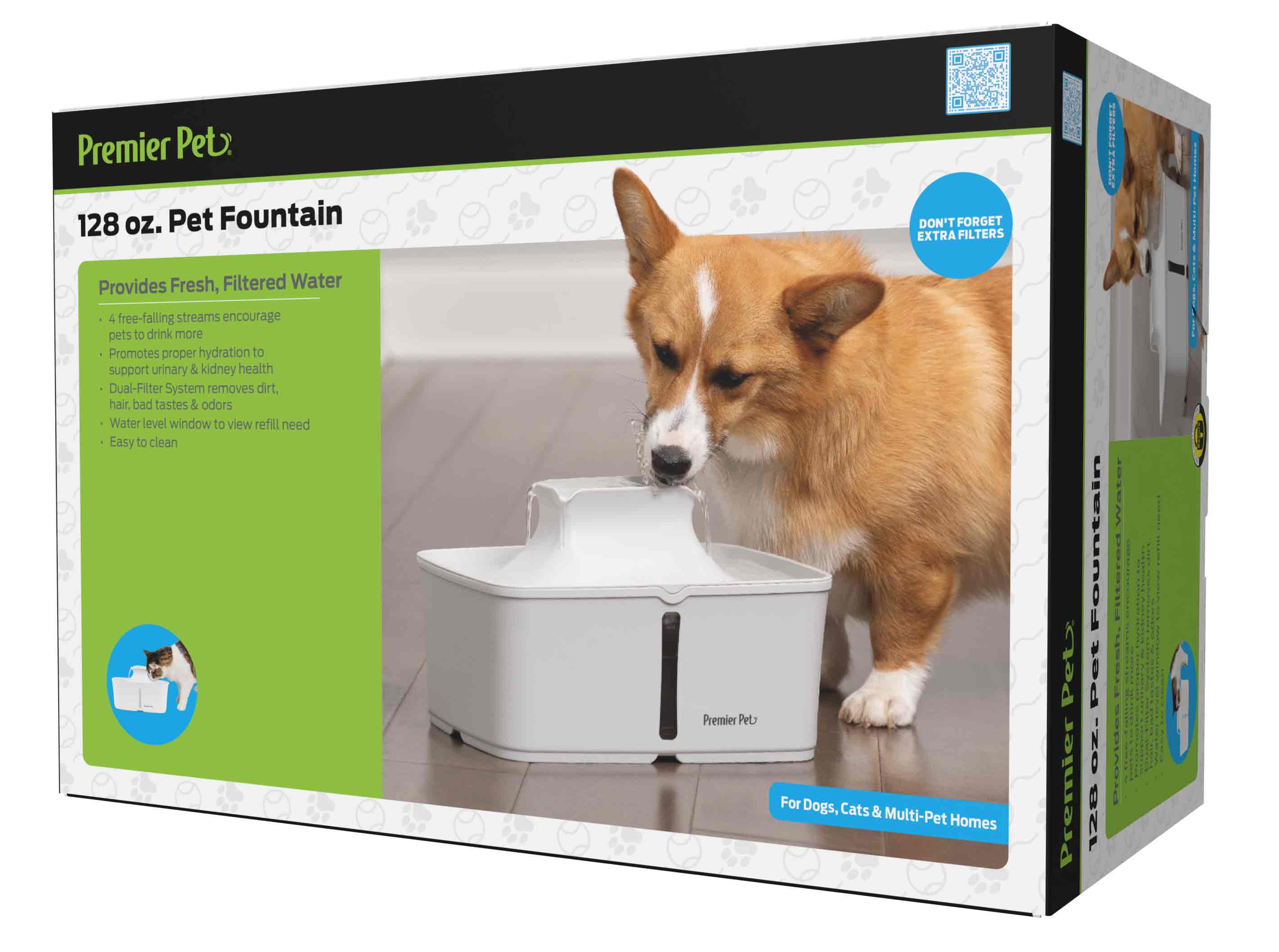 PREMIER PET 128 OZ PET FOUNTAIN - AUTOMATIC WATER FOUNTAIN FOR DOGS & CATS