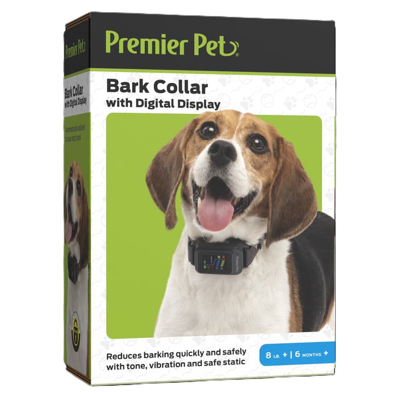 The Premier Pet Bark Collar helps reduce your dog’s barking quickly and safely. This collar offers multiple correction options, including tone, vibration and 7 levels of safe static stimulation. It automatically adjusts to your dog’s barking behavior, starting at the lowest level of static stimulation and increasing only if barking persists. This waterproof bark collar features a nylon strap that is adjustable up to 28 in, making it a great choice for dogs of all sizes. The new bark collar features an LED display with a bark counter that lets you monitor your dog’s barking activity. With up to 3 weeks of battery life, a low battery indicator and a quick 2-hour charge, you can rely on consistent performance. Enjoy a quieter home and a better-behaved dog with the Premier Pet Bark Collar.Specifications