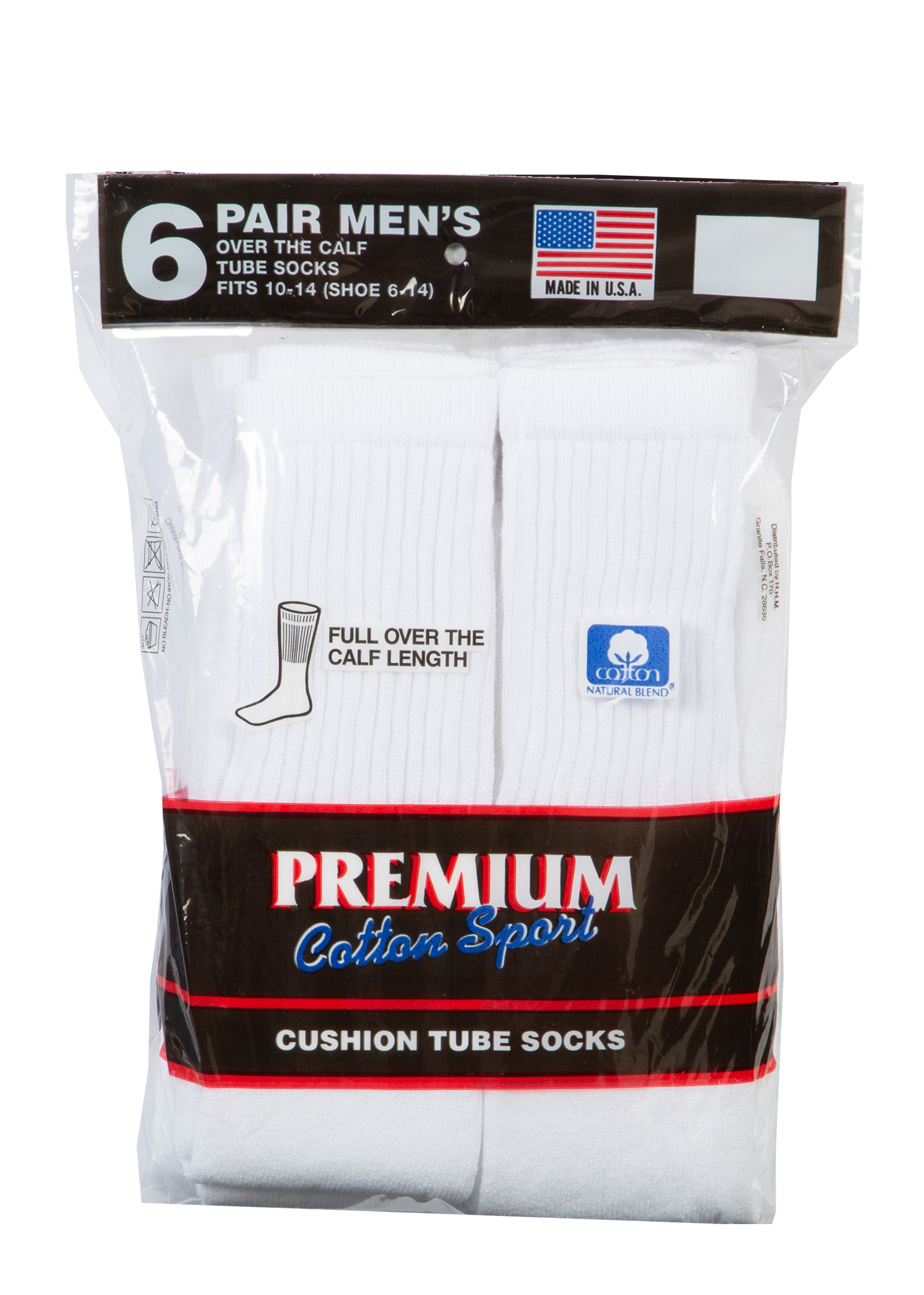 6 PAIR MENS CUSHION TUBE SOCKS. WHITE. FITS SHOE SIZE 6-14 SOCK SIZE 10-14. MADE IN THE USA.Specifications