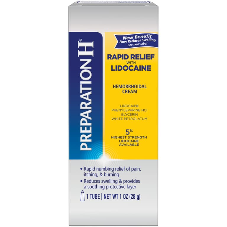 For temporary relief of pain, soreness and burning; Highest strength lidocaine available; Preperation H; Rapid Relief; Shrinks swollen hemorrhoidal tissue; Temporarily provides a coating for relief of anorectal discomforts