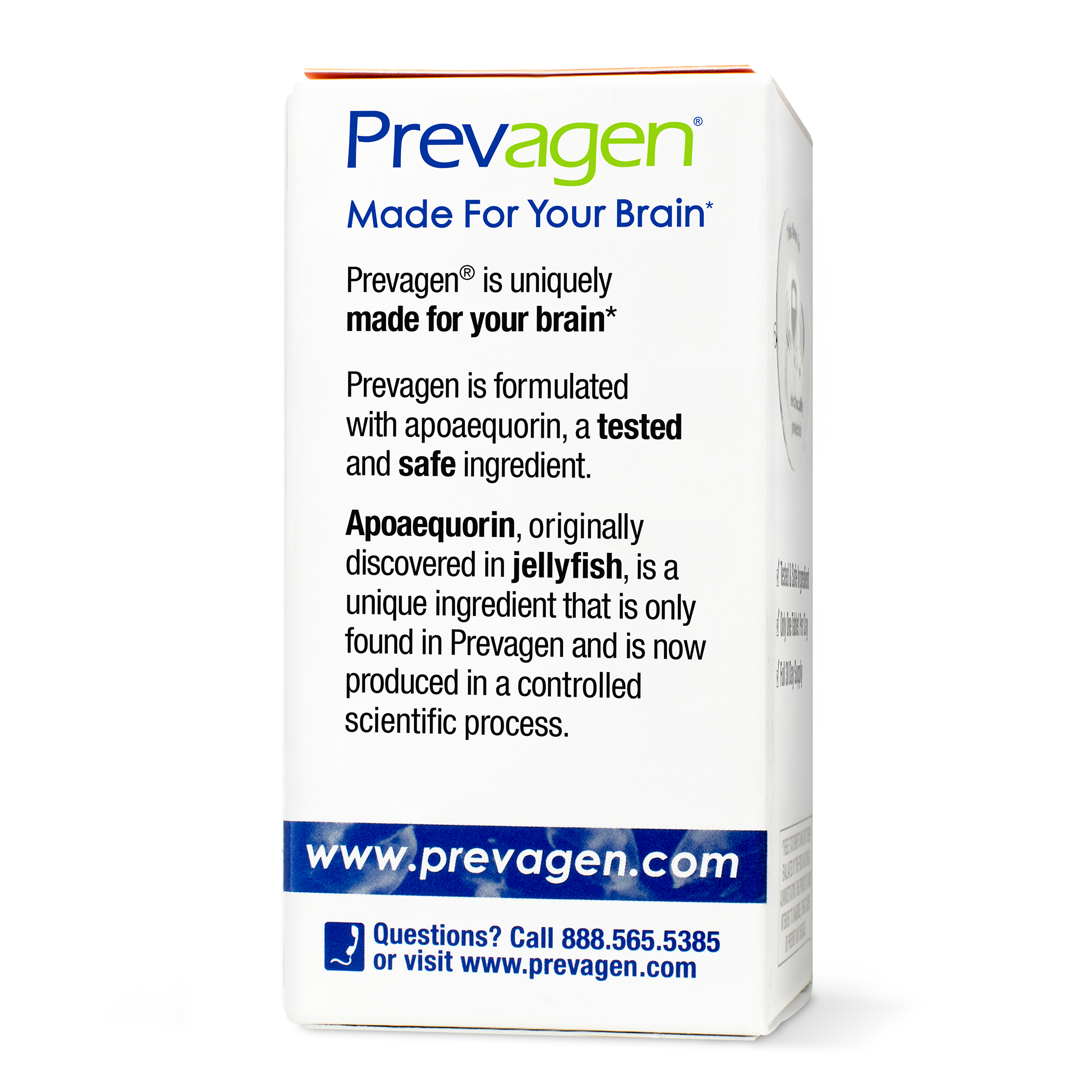 Overview:For Your BrainApoaequorin, originally discovered in jellyfish, is a unique ingredient that is only found in Prevagen and is now produced in a controlled scientific process. Prevagen is formulated with a safe and tested ingredient.Feature: Easy to take, only one tablet per day. For best results, take one Prevagen daily. Full 30-day supply. Tested & Safe ingredient.THESE STATEMENTS HAVE NOT BEEN EVALUATED BY THE FOOD AND DRUG ADMINISTRATION. THIS PRODUCT IS NOT INTENDED TO DIAGNOSE, TREAT, CURE OR PREVENT ANY DISEASE.Specifications