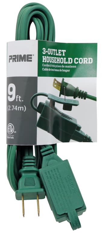 Primes 3-Outlet cords bring power to three items from one electrical outlet. This household cord is durable and flexible and the 3-outlet cube-tap is also equipped with a safety cover for unused outlets. Plugs and receptacles are polarized so that devices are always plugged in correctly with the proper polarization ensuring safety.Specifications