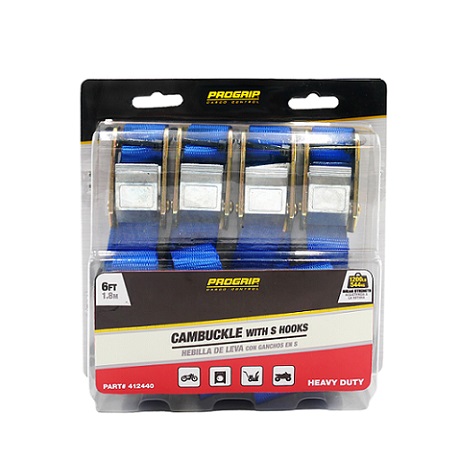 1,200ib Break Strength; 400lb Working Load Limit; 4pk; Blue Webbing; Cambuckle; S-Hooks