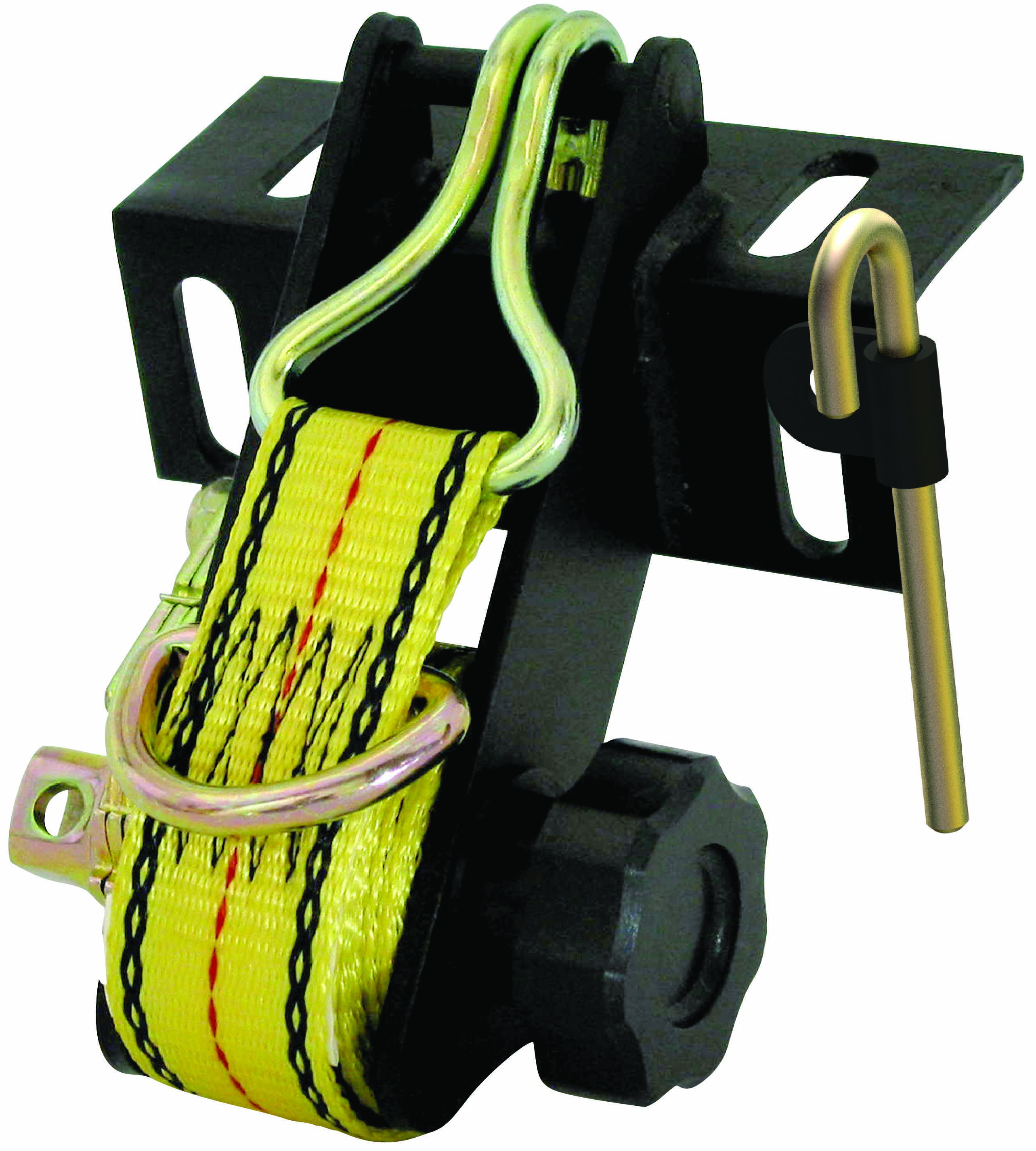 8' x 1 1/2" Yellow Strap; Black; D-Rings, JJ Hooks; Truck Rack Tie-Down