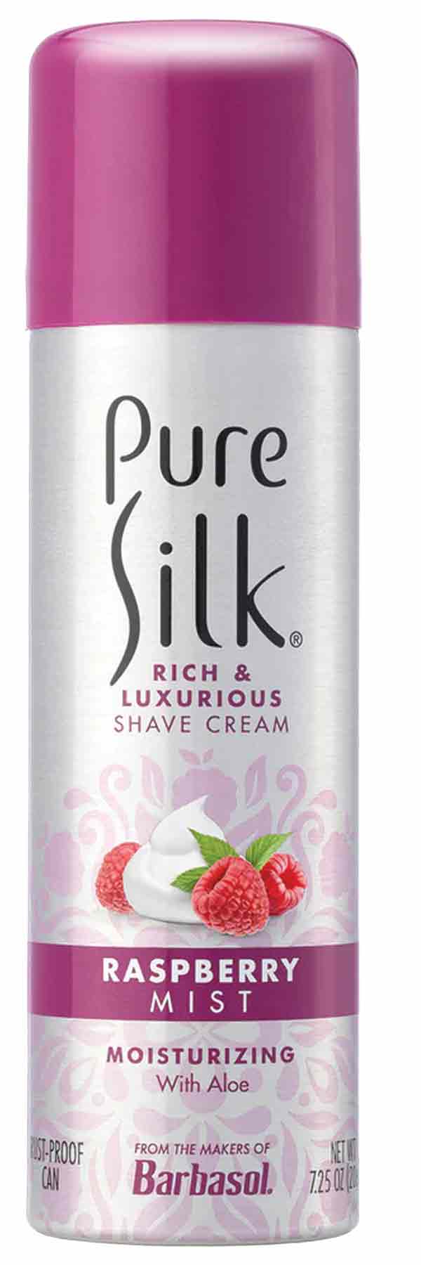 Pure Silk Raspberry Mist Spa Therapy Shaving Cream features a sweet, fruity fragrance that will remind you of summertime. The infusion of rich moisturizers protects, nourishes and provides a smooth glide to leave your skin looking, and feeling, as smooth as pure silk. Pure Silk Shaving Cream is available in cans with rust-proof aluminum bottoms, making it ideal for the shower. For an exceptional shave, pair with Pure Silk razors.Specifications