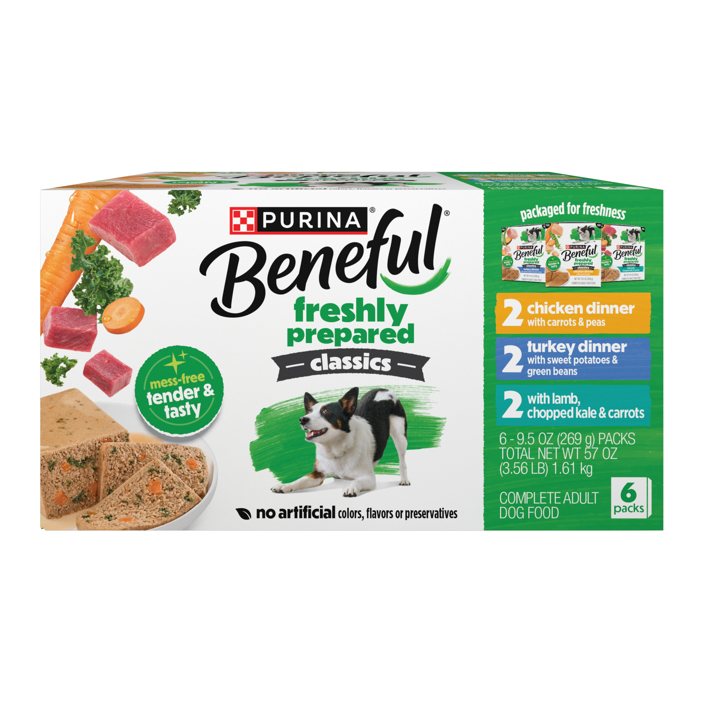 Easy-to-Enjoy: Made with real meat dog food delivers complete protein and with 100 percent balanced nutrition to support overall health.; Made with Real Protein: Purina Beneful Freshly Prepared Classics Variety Pack with Chicken, Turkey, or Lamb Dog Food is made fresh with quality ingredients and steam cooked to lock in flavor.