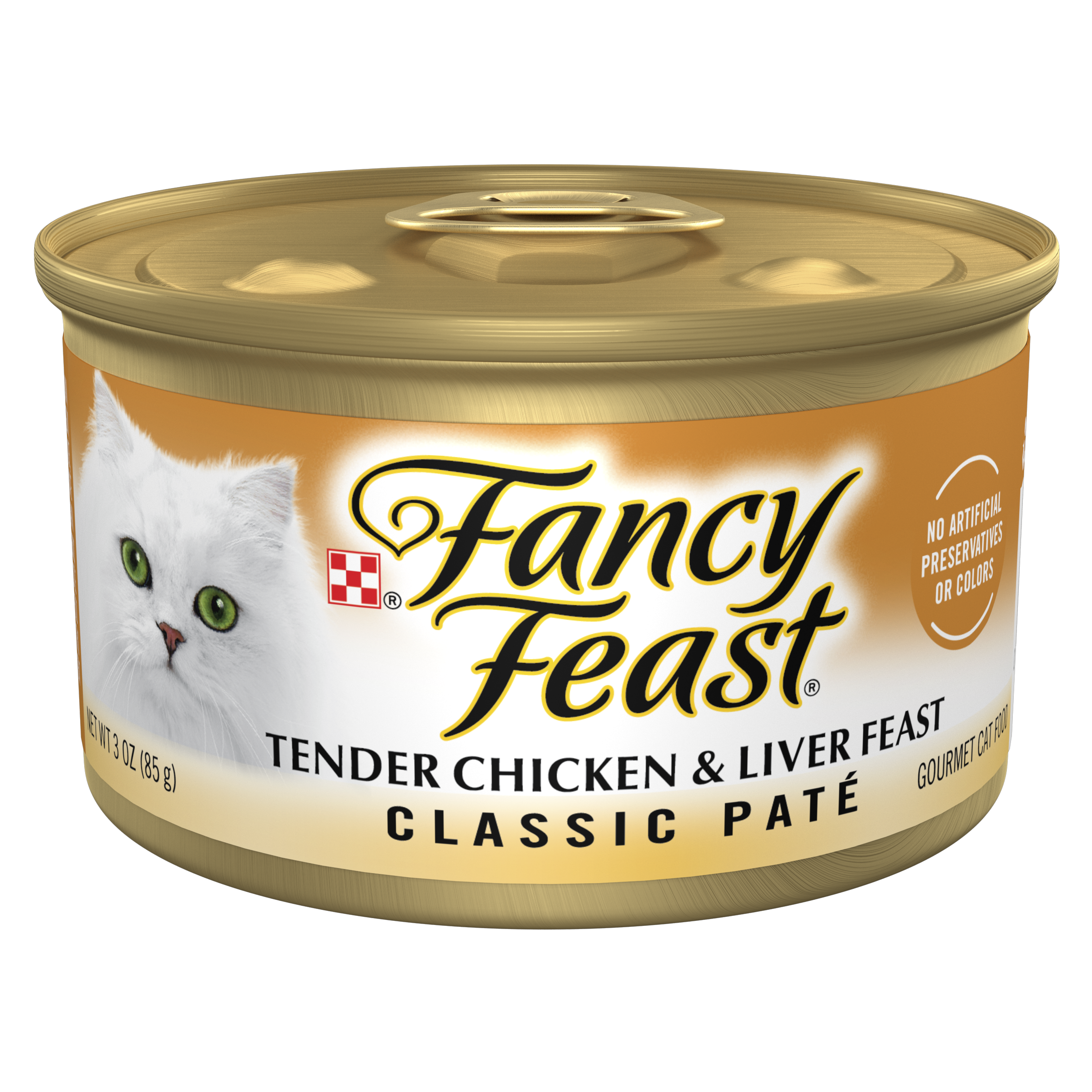 Serve your favorite feline Purina Fancy Feast Classic Pate Tender Liver & Chicken Feast wet cat food to show her that you understand her gourmet sensibilities. Made with a combination of tender, high-quality liver and chicken, this smooth pate gives her a savory, soft meal option that's easy for cats of any size to manage. The high-quality poultry provides your cat with the protein she needs for her active lifestyle, along with essential vitamins and minerals that help support her overall health. Every can of Purina Fancy Feast Classic Pate Tender Liver and Chicken Feast wet cat food delivers 100% complete and balanced nutrition while offering her the smooth texture and chicken flavor she craves. Add some variety to your cat's daily diet by alternating her canned cat food meals with Fancy Feast Marinated Morsels, Medleys and Gravy Lovers entrees, or try our Fancy Feast gourmet dry cat foods to broaden her culinary horizons.Specifications