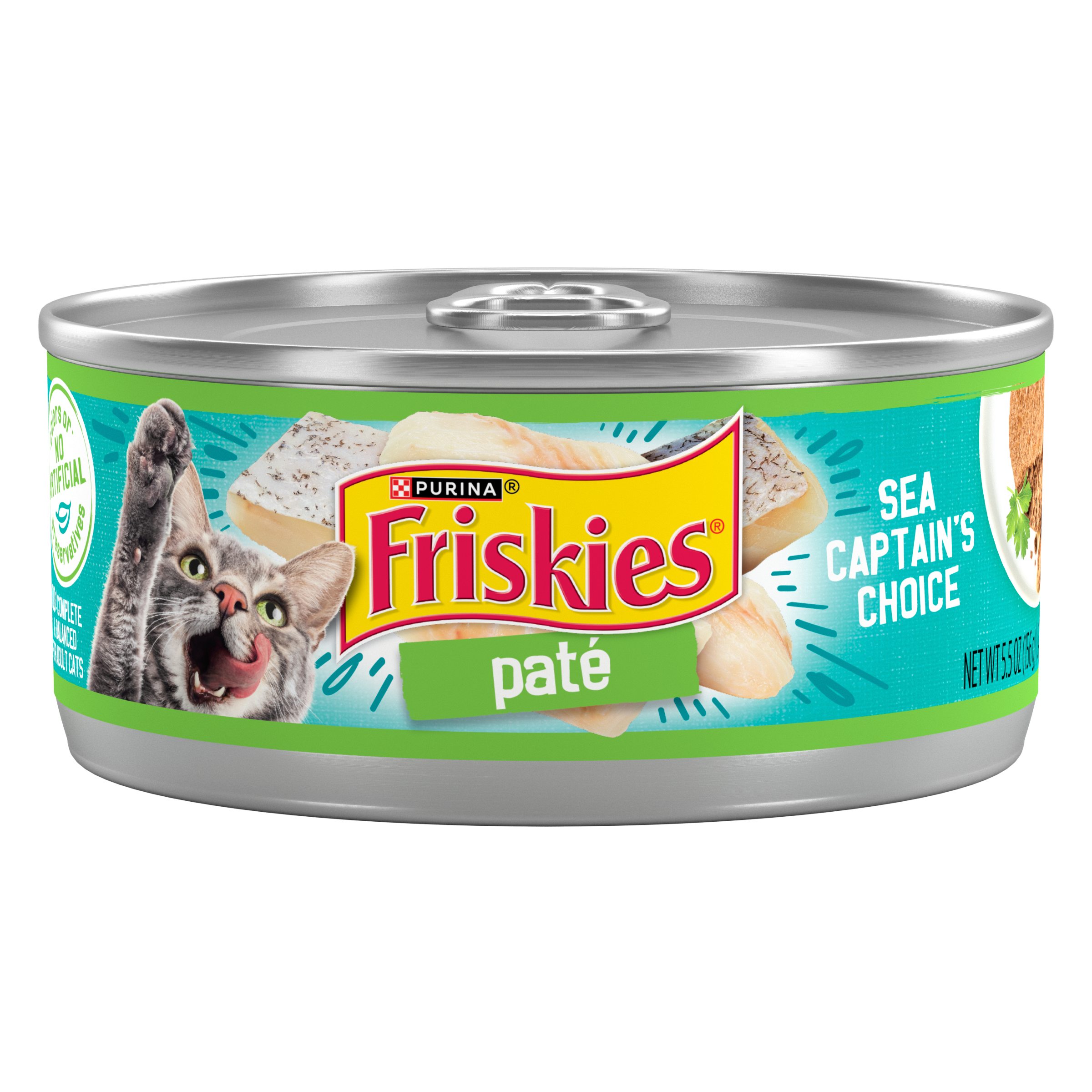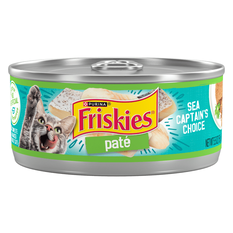 Set a course for delicious flavor adventures when you serve your cat Purina Friskies Pate Sea Captain's Choice wet food for cats. The enticing fish flavor is sure to make your cat purr with delight, and the smooth, moist cat food pate gives her healthy hydration and an irresistible texture she can enthusiastically sink her teeth into at mealtime. Open a can to let her detect the rich Purina Friskies cat food aroma and watch as she prances to her dish in anticipation of a scrumptious meal. With 100 percent complete and balanced nutrition to support the growth of kittens and maintenance of adult cats and no artificial colors or preservatives, this soft cat food pate recipe lets you feel confident she's getting the nourishment she needs to continue her playful and active lifestyle. Say ahoy to delectable goodness when you offer up this Purina Friskies pate cat variety and show your darling cat that you are paying attention to her love of seafood flavors.Specifications