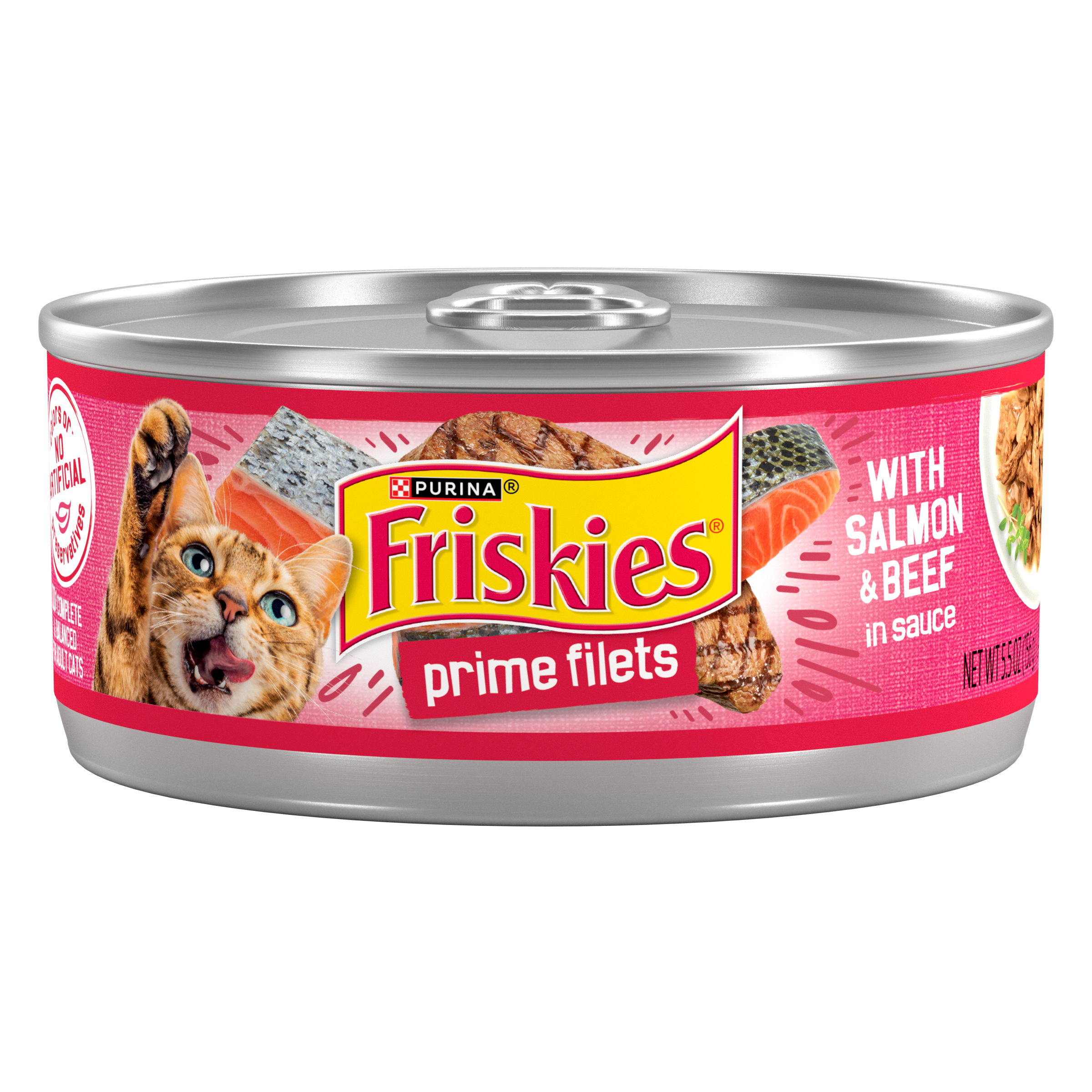 PURINA FRISKIES PRIME FILETS WITH SALMON & BEEF IN SAUCE WET CAT FOOD, 5.5 OZ