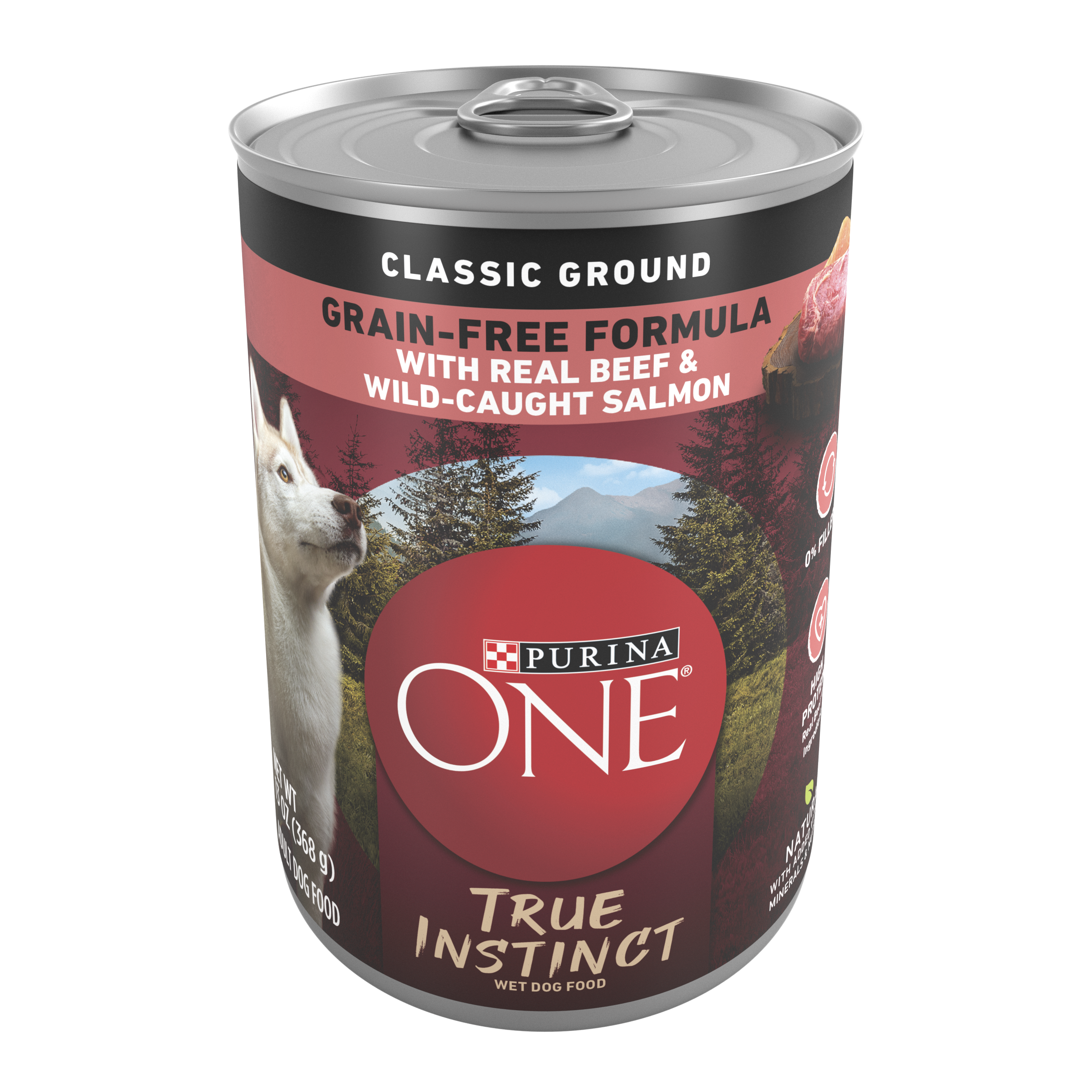 Feed your dog’s instinct to choose nutrient-dense food with Purina ONE SmartBlend True Instinct Classic Ground With Real Beef and Wild-Caught Salmon. 100% complete and balanced nutrition combines broth, real beef and other high-quality ingredients to create a meal option or topper your adult dog will love.Specifications