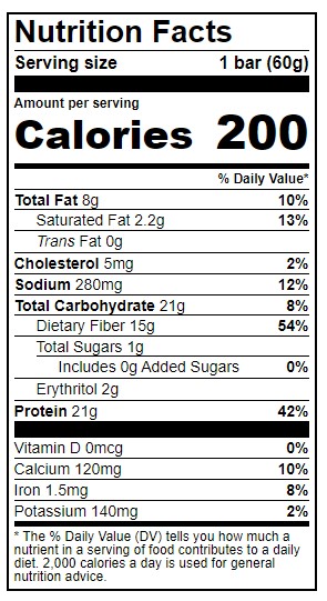13g Fiber; 1g Sugar; 21g Protien; 21g Total Carbs; 4g Net Carbs Per Serving