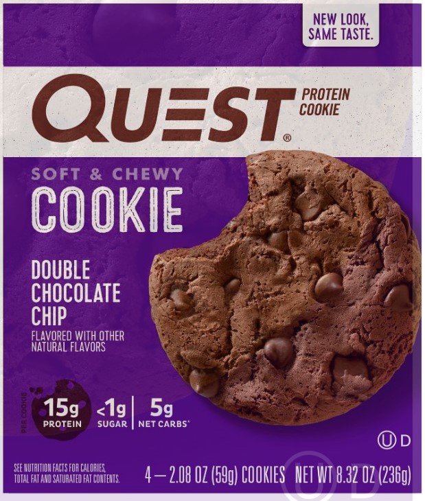 YOU DESERVE A COOKIE: The Quest Double Chocolate Chip Protein Cookies provide you with a sweet, soft & chewy cookie with 15g protein, 5g net carbs and less 1g of sugar.UNWRAP COMPLETE PROTEINS: Quest Double Chocolate Chip Protein Cookies are made with complete, dairy-based proteins to provide you with 9 essential amino acids.FIBER IS YOUR FRIEND: Quest Double Chocolate Chip Protein Cookies have 11g of fiber to provide your body with a more complete macro profile.No Gluten Containing Ingredients. State of Readiness: Ready to EatSWEET WITHOUT ALL THE SUGAR: Enjoy the sweet taste of a double chocolate chip cookie with less than 1g of sugar.TREATS THAT TRAVEL WITH YOU: Take Quest Double Chocolate Chip Protein Cookies with you in your backpack, purse, car console, cup holder, gym bag or wherever your adventures take you.Specifications