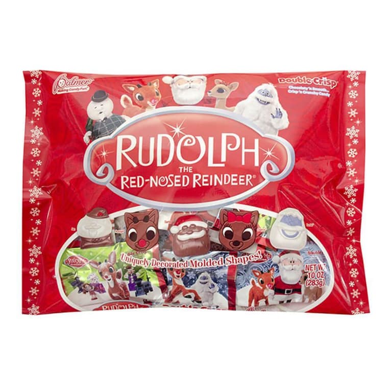 CELEBRATE THIS SEASON BY GRABBING A BAG OF R M PALMER RUDOLPH THE RED NOSE REINDEER AND FRIENDS DOUBLE CRISP CHOCOLATES. THIS BAG OF CHOCOLATE FEATURES DECORATED SHAPES FROM THE MOVIE AND EACH PIECE IS INDIVIDUALLY WRAPPED MAKING THEM PERFECT FOR SHARING WITH FRIENDS AND FAMILY OR ADDING TO YOUR CHRISTMAS CANDY DISH.Specifications