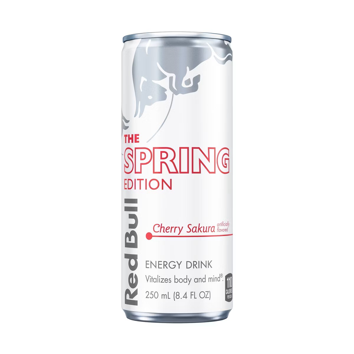 This Red Bull Spring Edition features exceptional taste of cherry, cherry blossom, and almond. This lightly carbonated beverage gives you wiiings for your workout, gaming session, at work or school, social events and everyday life. Each 8.4 fl oz can contains a premium energy blend of 80mg caffeine, the amino acid taurine & four essential B vitamins (B3, B6, B12 and B5). Always check can labels for the most updated product nutritional and ingredient information. Calcium and sugars values declared on labels may vary slightly depending on production locations. Available in single can, 4-packs, and 24-packs. Comes in aluminum cans that can be recycled over and over.Specifications