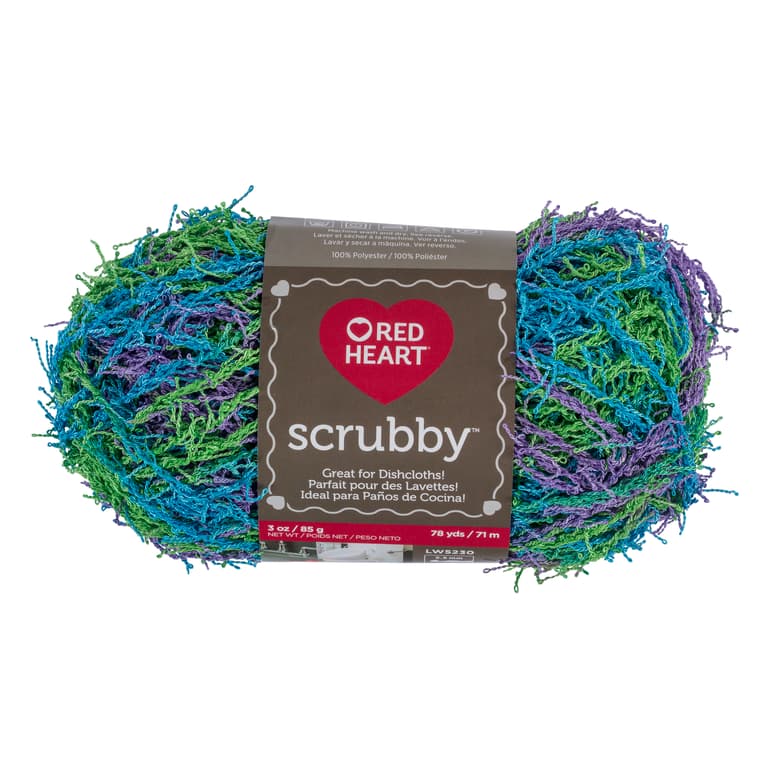 Coats & Clark Red Heart Scrubby yarn is uniquely textured and is great for knit and crochet washcloths and dishcloths. Machine wash warm on a gentle cycle, tumble dry low, do not iron, dry cleanable.Specifications