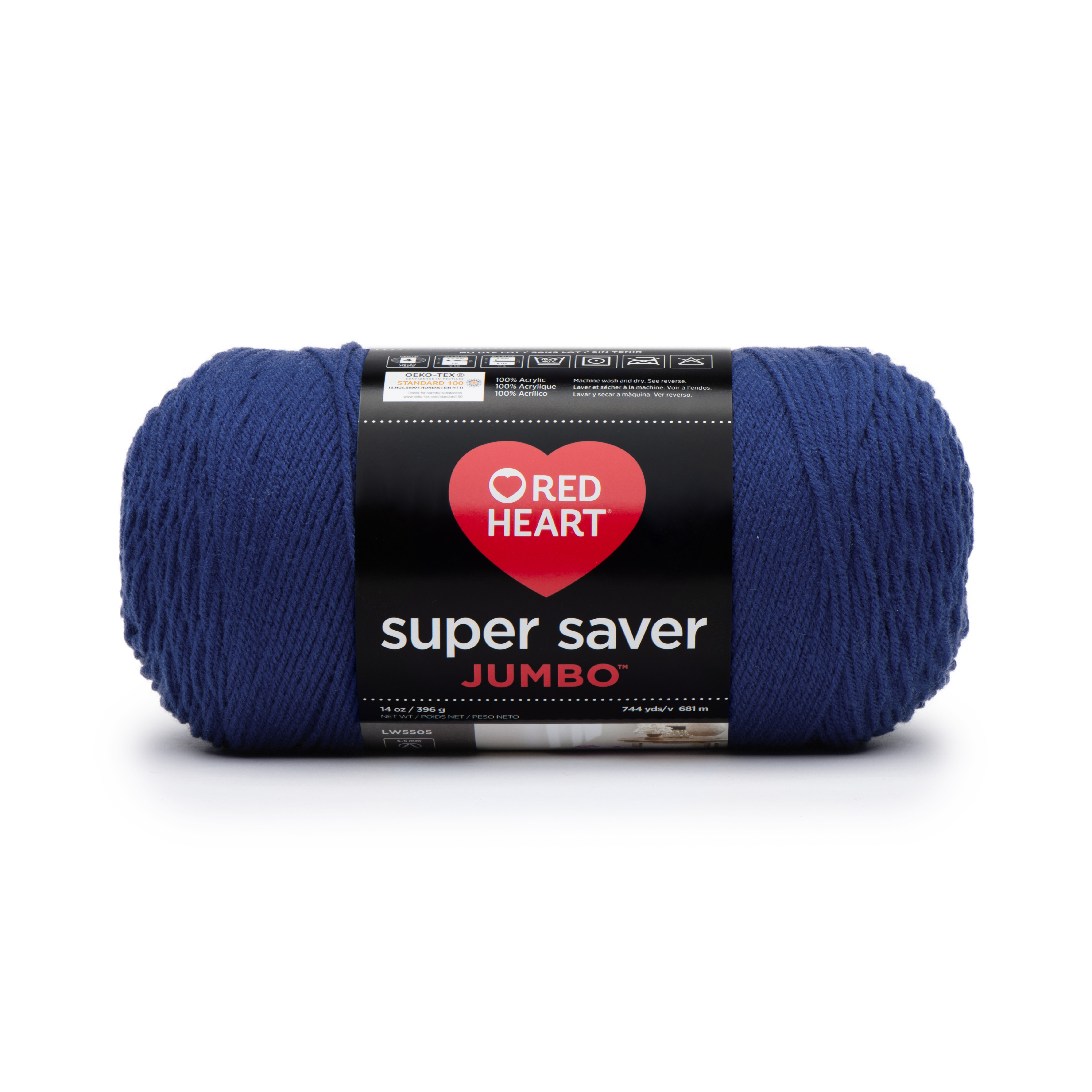 Red Heart Super Saver Jumbo yarn is the same Super Saver yarn you love in larger skeins. Each Super Saver Jumbo skein is the size of two skeins of the regular Super Saver, so that you have half as many ends to weave in. Just like Super Saver, Super Saver Jumbo has no-dye-lot solids. Super Saver Jumbo is ideal for sweaters, afghans, and other projects requiring large quantities of yarn.Specifications