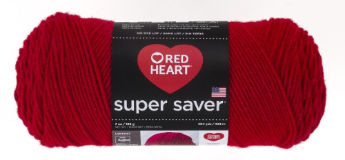 Red Heart Super Saver Yarn is a premium all-purpose yarn that features traditional hand and excellent wash performance. It is a size 4 medium weight, 4ply yarn made of 100% Acrylic fiber. No-dye-lot solids means all skeins of a solid color match. Recommended for US size I crochet hook or US size 8 knitting needles. Hand wash gently, lay flat to dry.Specifications