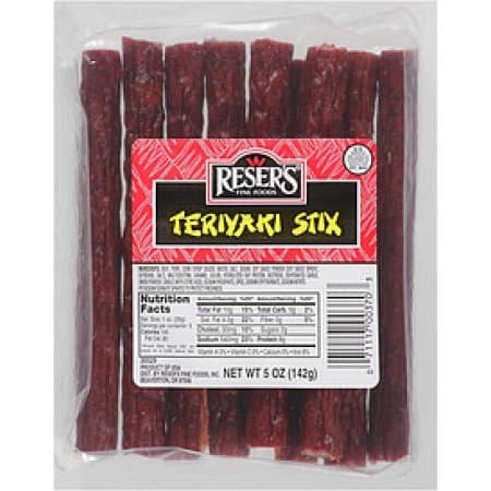 Reser's Factory Fresh Teriyaki Sticks 5 oz. 9 - 10 sticks per package.Bold teriyaki flavorful meat sticks. Excellent snack for traveling, hiking or anytime you're on the go. Good source of protein.Specifications