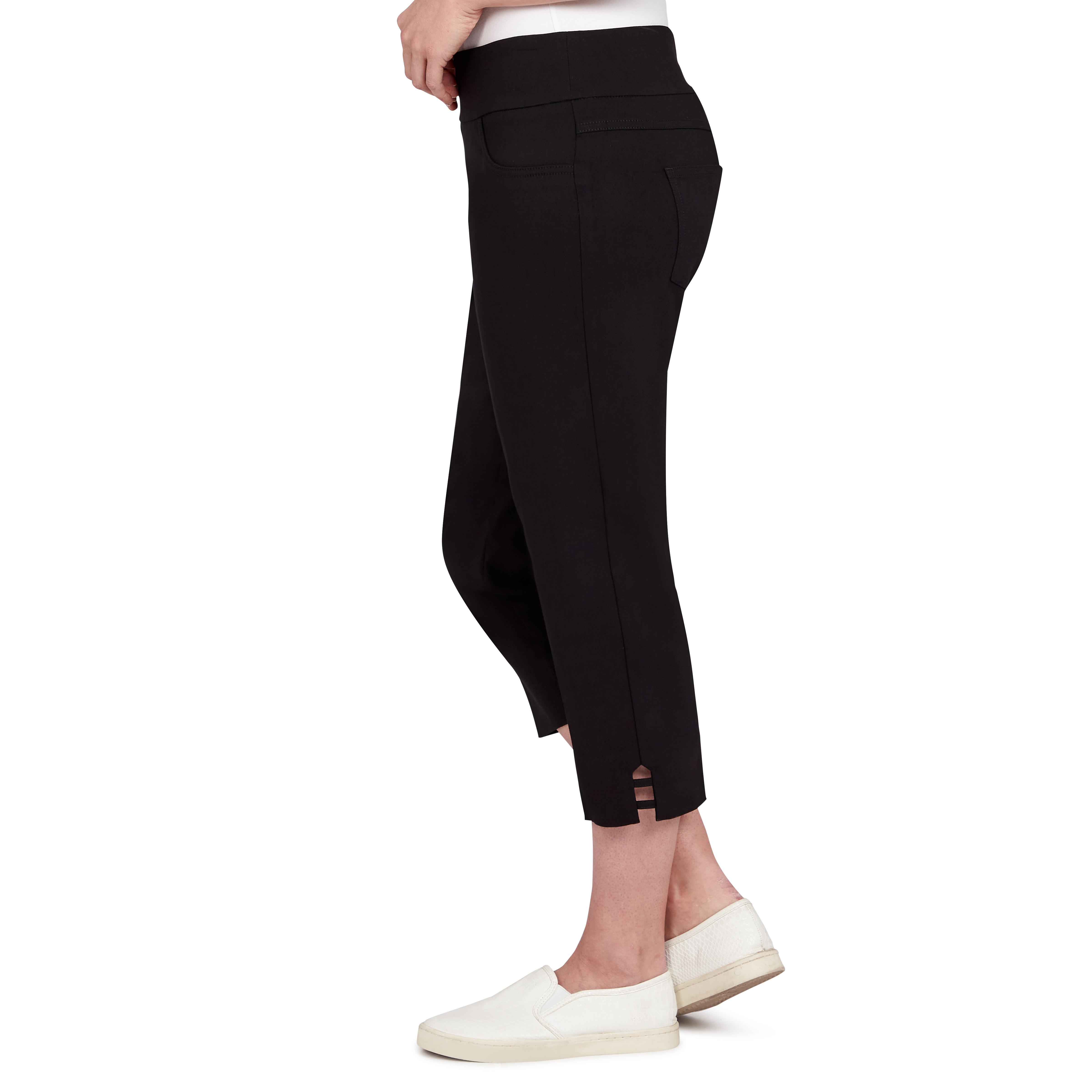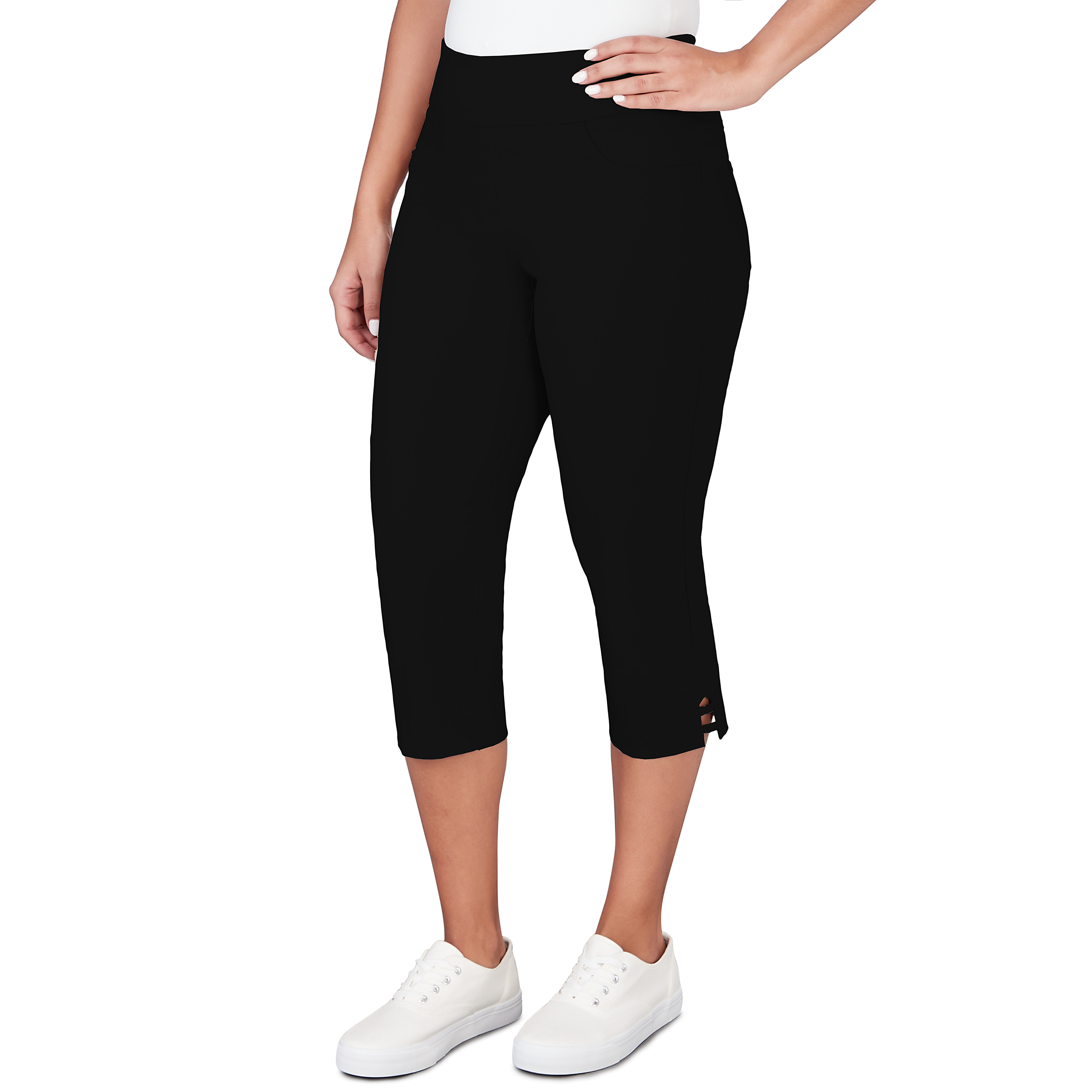 RUBY ROAD WOMENS CAPRI FEATURE AN ELASTIC WAISTBAND FOR EASY PULL ON A LADDER HEM WITH 21 INCH DETAIL AND COMFORTABLE MATERIALSpecifications