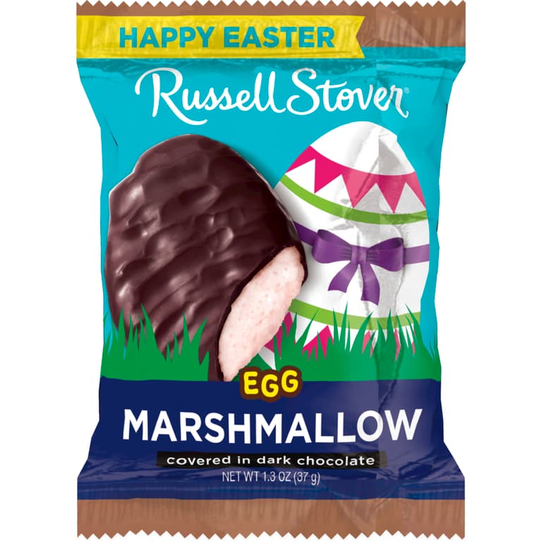 RUSSELL STOVER Easter Marshmallow Dark Chocolate Easter Egg, 1.3 oz., has fluffy marshmallow center covered in our rich, dark chocolate. Each delicious Easter egg is individually wrapped, making it a perfect sweet treat or Easter basket filler.Specifications