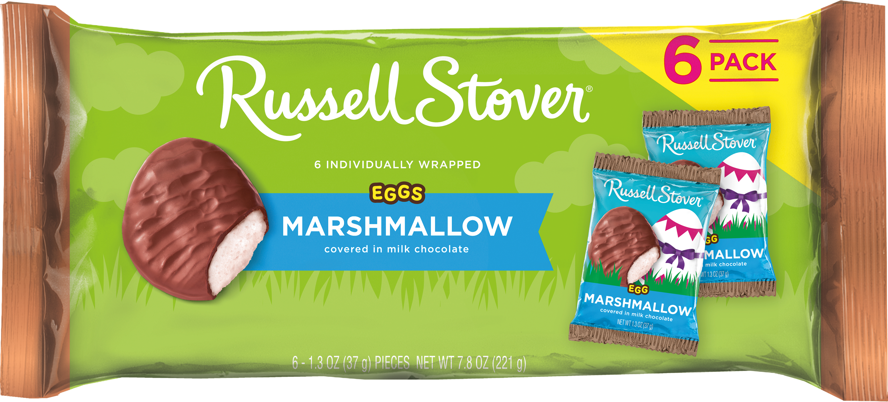 RUSSELL STOVER Easter Marshmallow Milk Chocolate Easter Eggs features 6 fluffy, marshmallow Easter eggs dipped in our delicious milk chocolate. This 6 pack of individually wrapped Easter eggs is the perfect sweet treat or Easter basket filler.Specifications