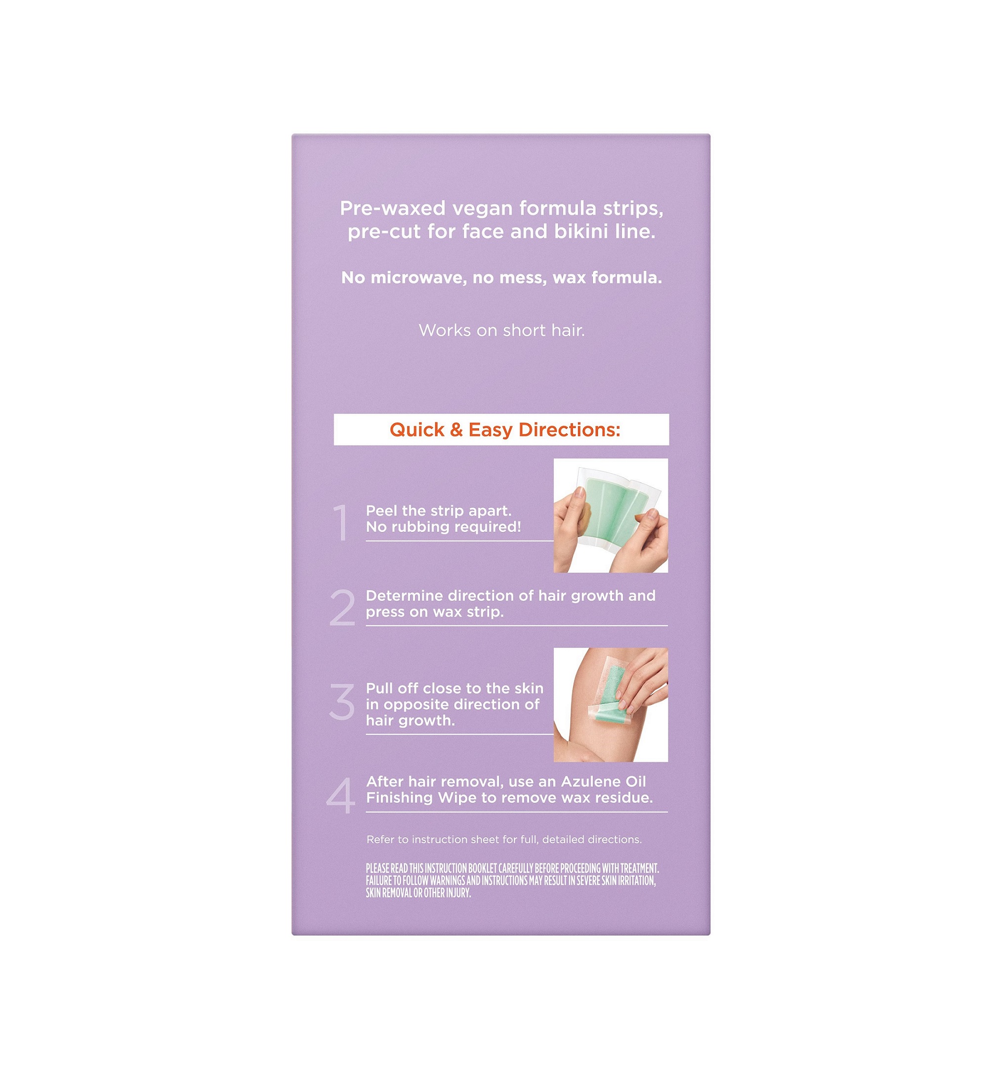 The quick and easy way to remove hair, pain-free. It’s so convenient, you can take it anywhere. Their formula works on short hair which is perfect for those of us who find we are always trimming a few blonde strands here and there. The ridges on the wax strips allow them to latch onto any unwanted hairs or stubble just as they are ready to break through your skin. Sally Hansen offers both pre-waxed strips and underarm, leg, and body waxing sets that come complete with pre-cut strips so you know exactly what area you're doing without wasting any time at all. They offer up to 8 weeks of not having pesky hairs afterward.Specifications