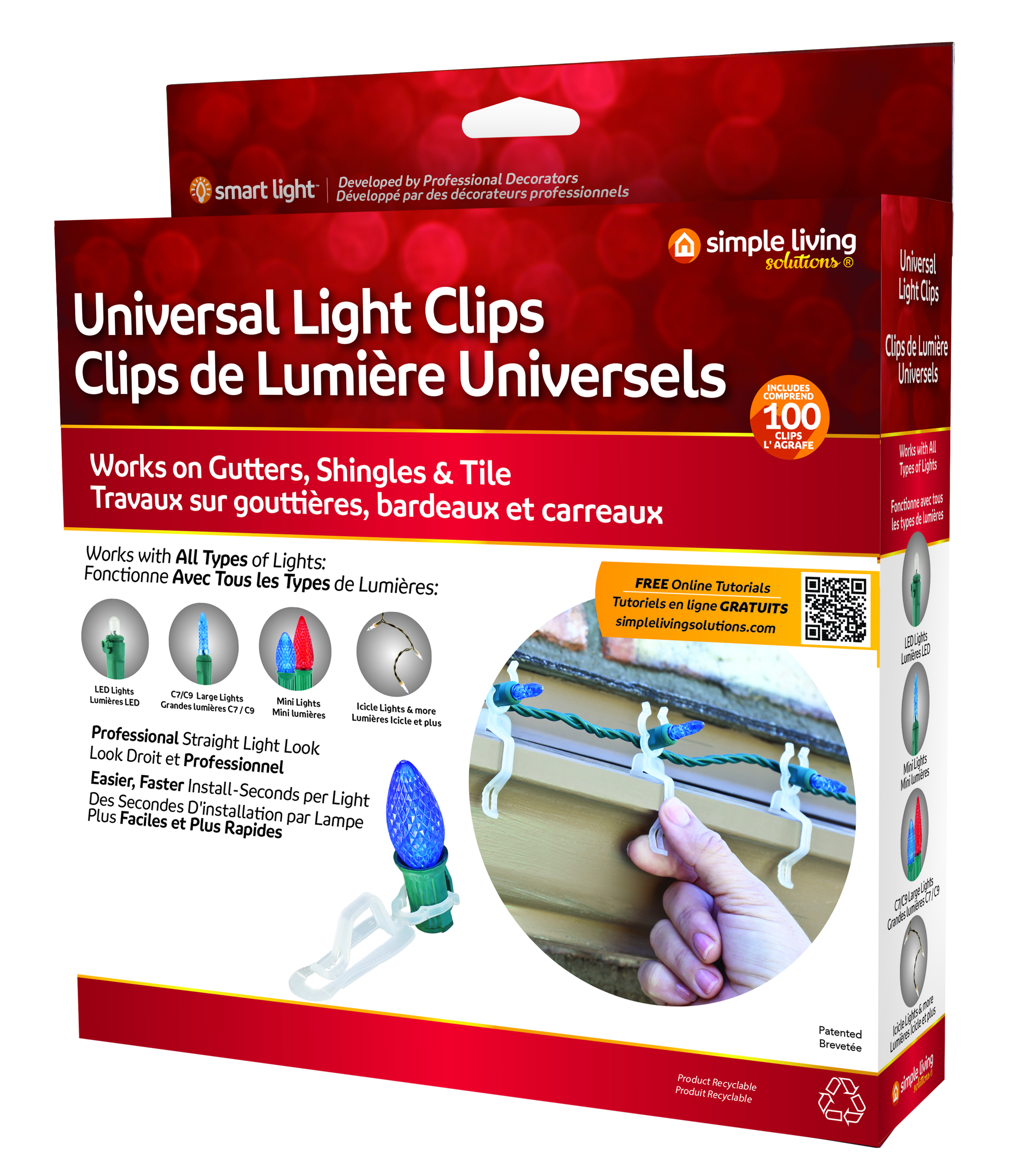 100 CLIPS; EASY AND FAST INTSTALLATION; PROFESSIONAL STRAIGHT LIGHT LOOK