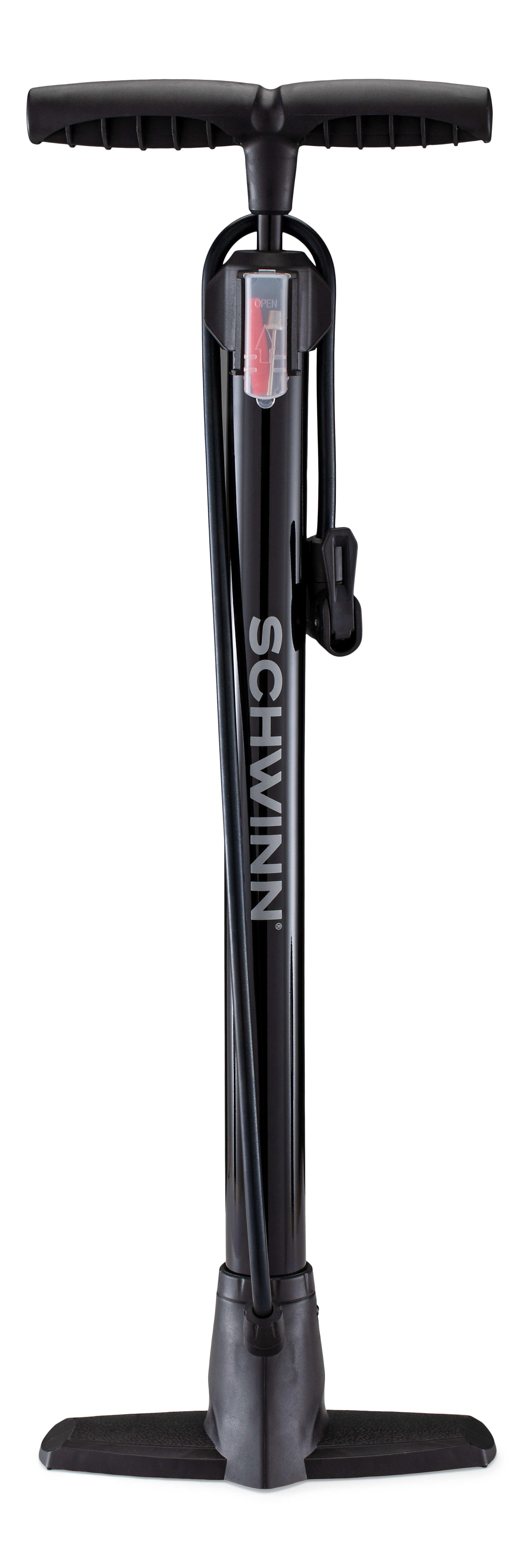 Schwinn basic floor pump, High Pressure so you can inflate your tires with less effort. Dual head with adaptors iuncludedSpecifications
