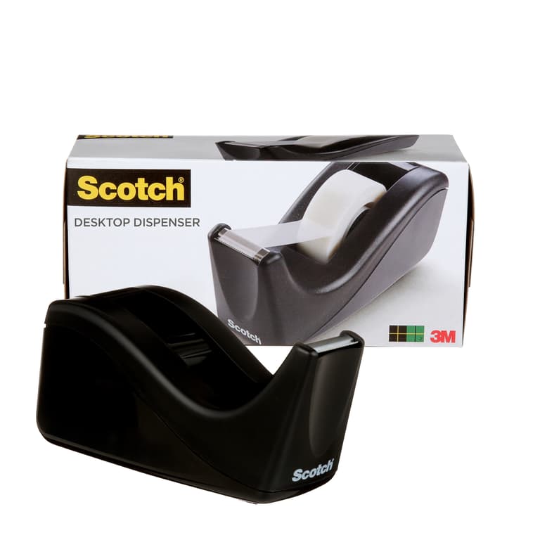The best projects start with Scotch Brand. This Scotch Desktop Office Tape Dispenser is a classic black finish, with a deluxe wave design, and a weighted base to stay in place. The sleek look is a desk worthy option that adds to any decor. The weighted, non-skid base is ideal for easy, one-handed dispensing with ease. It has an attached tape hub (middle core) so no more missing refill core. With a high quality cutting blade, you can depend on Scotch Brand quality designed to last for years. Go ahead, refill this dispenser with roll after roll and to save on plastic waste. Great to give to teachers, co-workers or add to your own home office. Keep tape nearby to fix, create, wrap, ship and more. Always choose Scotch Brand Tape to fill the dispenser, no matter the job. Try Scotch Gift-Wrap Tape for wrapping presents, Scotch Super-Hold Tape for heavier duty labeling and organizing on surfaces like plastic, metals and cardboard. For everyday use refill with Scotch Magic Tape that is ideal for 100's of uses. This dispenser is for tape refills that use a 1" core. The best projects start with the number one selling home and office tape (based on 2024 NPD data).Specifications