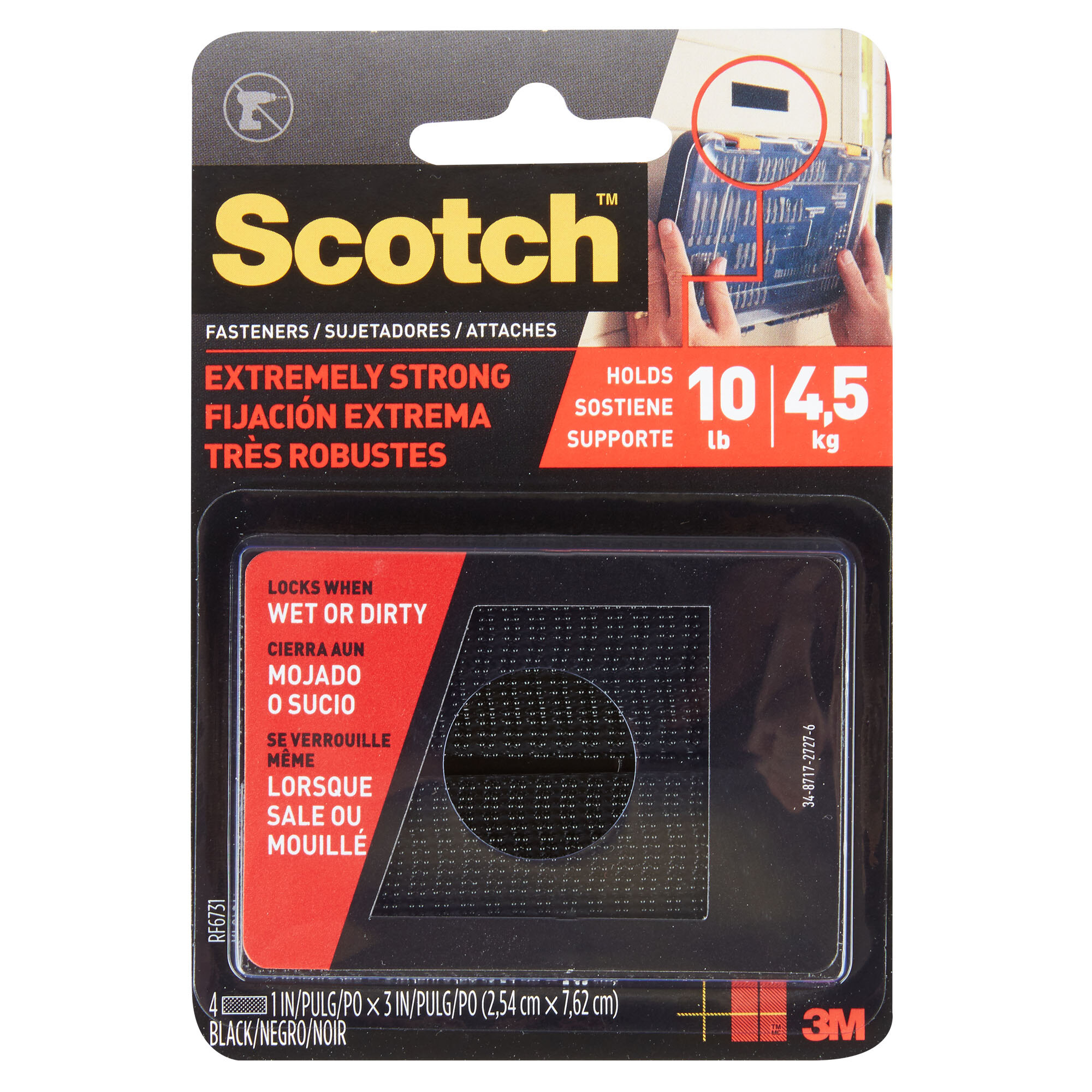 When only the strongest hold will do, reach for our strongest fastener, Scotch Extremely Strong Fasteners. Designed with reclosable, dual lock technology, these heavy duty permanent fasteners are ideal for holding down tarps, hanging metal signs, and even mounting tools or solar lights. They're great for indoors too-think a chalkboard and even framed art. So give your power tools a break, and get the job done in a snap with the gravity defying power of Scotch Extremely Strong Fasteners.Specifications