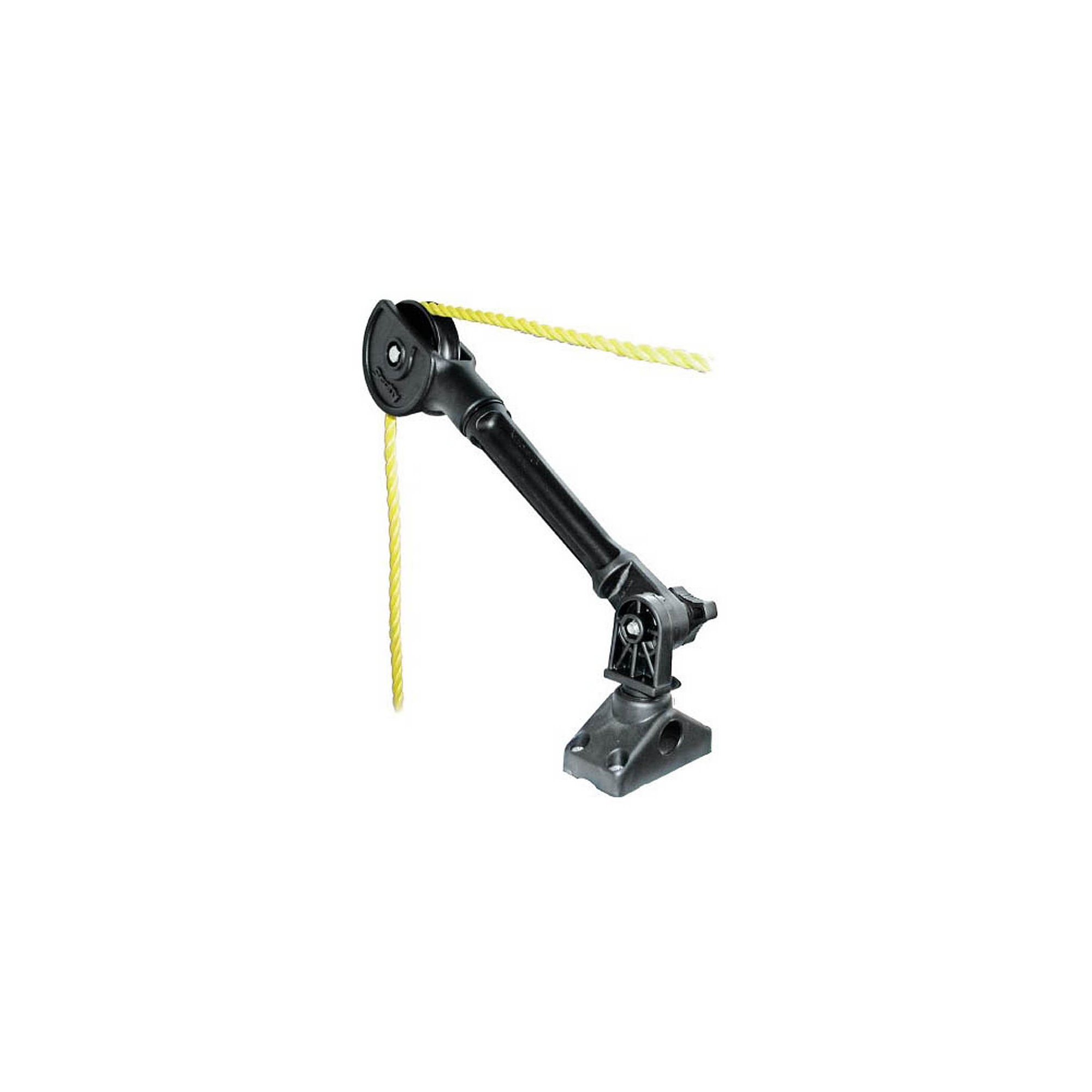 Large size roller with pivoting head makes for smooth operation. For use with rope up to 1/2 diameter; Long arm for extended reach over gunnel. Adjustable arm angle. Includes No. 241 side/deck mount; Recommended for non-commercial single trap use