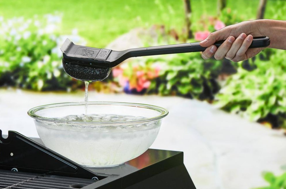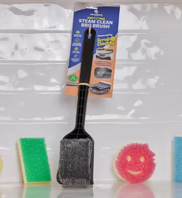 Bristle Free stainless steel armortech mesh BBQ Brush uses a water activated design to clean with the power of steam. Flexible sponge scrubs stubborn burnt on food and grates easily while the heavy duty scraper removes grease buildup. Simply submerge the scrubbing head in ice cold water and apply it directly to your preheated grill at 300°F to let that steam melt the grime away. It doesn't matter what condition your grill is in; the Steam Clean BBQ Brush can clean it. This grill brush is efficient and safe for charcoal, smokers, kamado, electric grills and much more. Powered By the original Scrub Daddy.Specifications