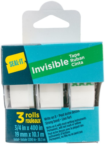 Seal-It 3pk Invisible Stationery Tape, 3/4in x 400in, Small Ultraline Dispenser. A multi-purpose stationery tape that you can even write on! Seemlessly seal and label with Seal-It's Invisible Tape. You'll want a roll for all the work and craft areas in your life.Specifications