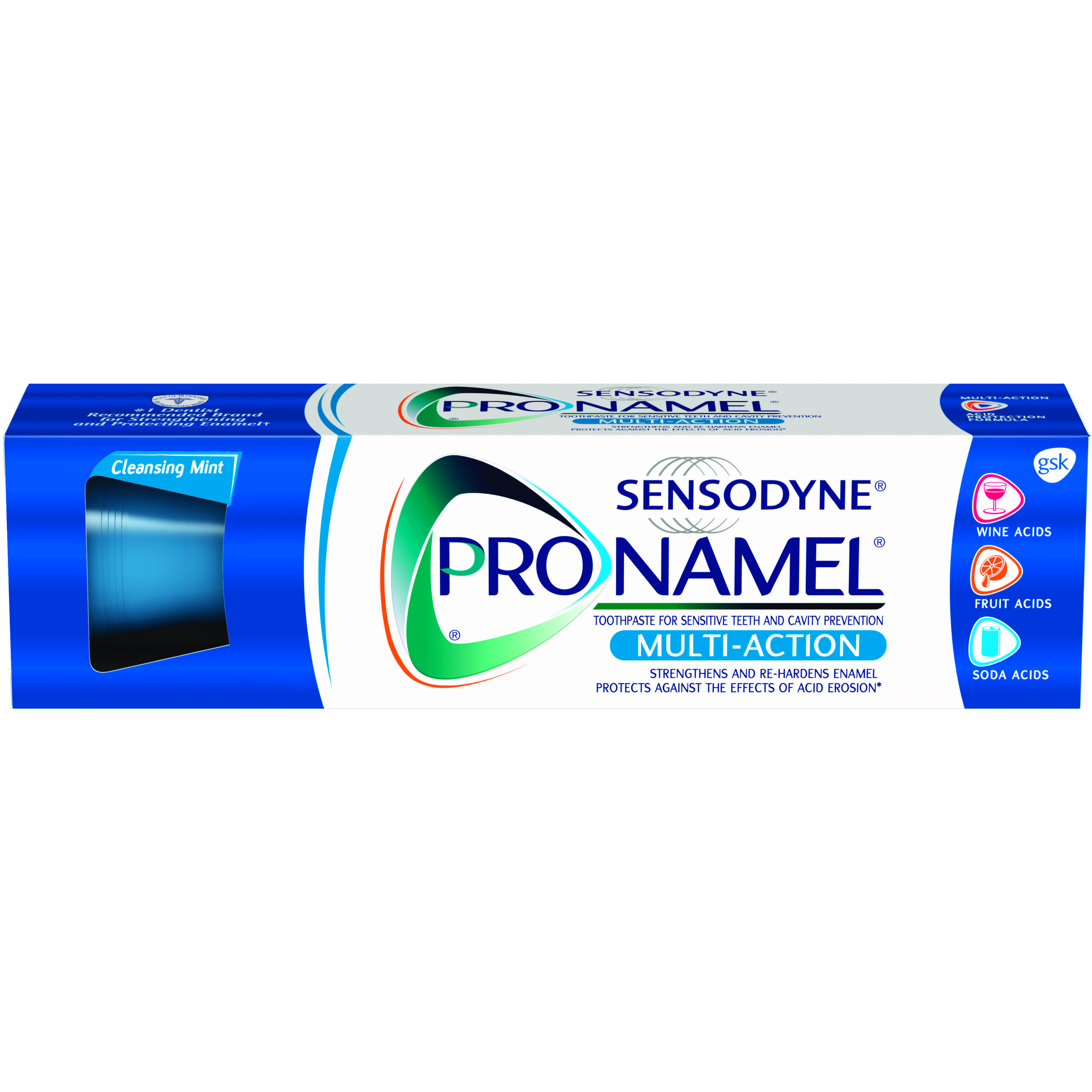 Sensodyne Pronamel Multi-Action Enamel Toothpaste for Sensitive Teeth is an anticavity toothpaste that restores the natural whiteness of your teeth as it protects you from acid erosion caused by foods and drinks. This teeth whitening sensitive toothpaste releases fluoride to provide cavity protection as it strengthens and rehardens tooth enamel that has been softened by exposure to acidic foods and everyday acids. Sensodyne Pronamel toothpaste delivers a special formula that remineralizes your teeth boosting the delivery of calcium to strengthen enamel and stop further damage. Protecting your teeth from pain triggers this sensitivity toothpaste provides lasting relief brightening your teeth and leaving you with fresh breath. Brush with this cavity protection toothpaste for two minutes twice daily. Build a stronger foundation with Pronamel so your teeth can look and feel their best.Specifications
