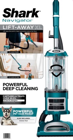 The Shark Navigator Lift-Away has a detachable pod making it easily to clean above floor areas like stairs and furniture. The anti-allergen complete seal technology and a HEPA filter trap 99.9% of dust and allergens inside the vacuum cleaner.Specifications