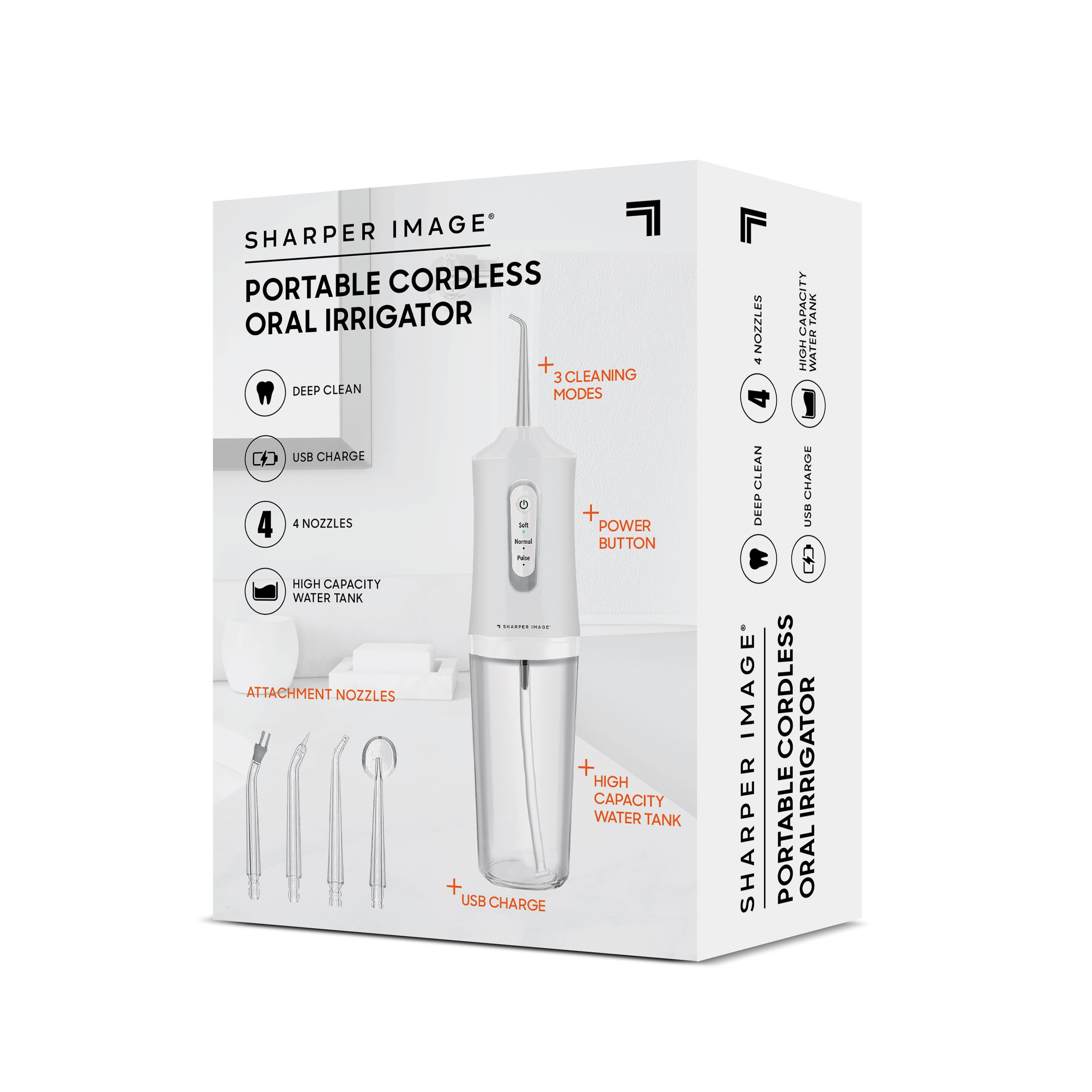Sharper Image Portable Oral Irrigator comes with a 0.5mm water stream design that removes up to 99.9% of food debris and dental plaque.Specifications