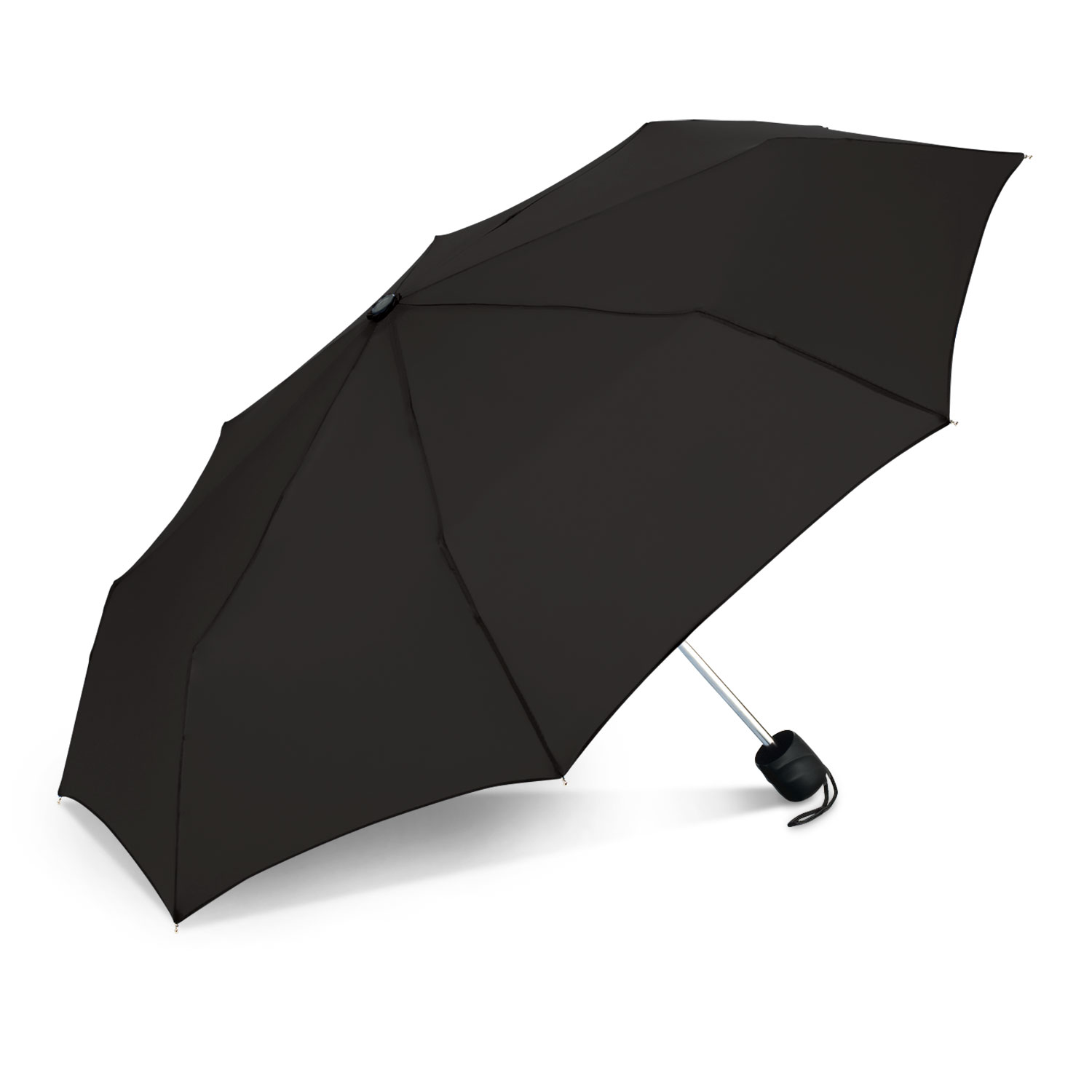 Black rubber handle; Closes to approximately 9 1/2 in length; Crown logo; Manual opening; Steel shaft and ribs; Super mini compact 42 arc umbrella with 3 section shaft