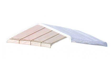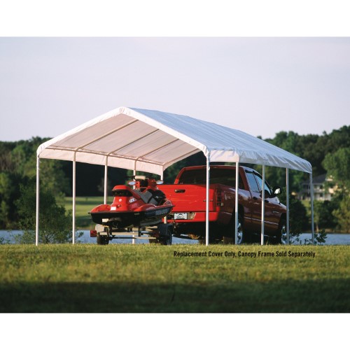 Super Max 12 x 26 ft. Replacement Top is the ready to install canopy cover. Designed to exact frame specifications of the 12 x 26 ft. Super Max Canopy. Don t settle for cheap tarps or aftermarket covers to replace your canopy cover. Insist on authentic ShelterLogic brand canopy covers. Constructed of the same quality materials and workmanship of our original canopy. Perfect for refurbishing worn out or damaged canopy covers. Ripstop tough triple layer woven polyethylene fabric material built to exact specifications of original canopy cover Heat welded seams not stitched for a stronger bond and 100% water resistance Twist Tite tensioning patented feature at every corner leg allow user to tighten cover by twisting leg delivering optimal cover to frame fit Ultimate UV protection treated inside, outside and in between with added fade blockers, anti aging, anti yellowing and anti-microbial agents for long lasting performance 50 UPF Sun Protection All ShelterLogic replacement covers are tested to 50 UPF Ultimate Ultraviolet Protection blocking 98% of harmful UV Rays Easy to install cover goes up fast and remains secure with bungee fasteners.Specifications